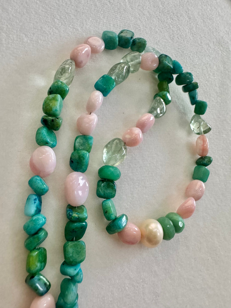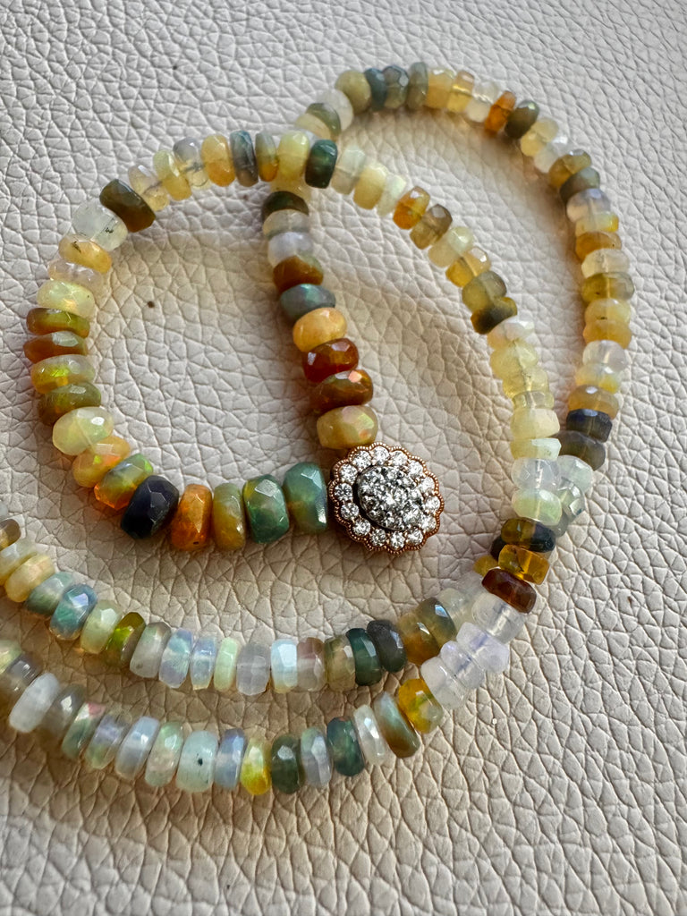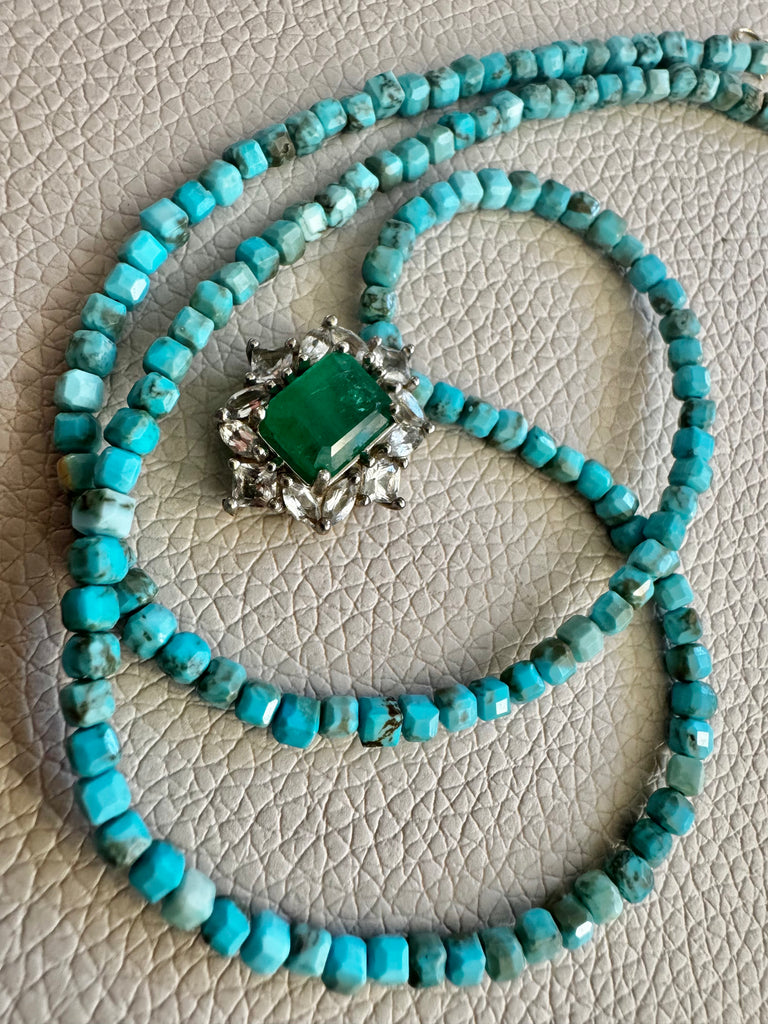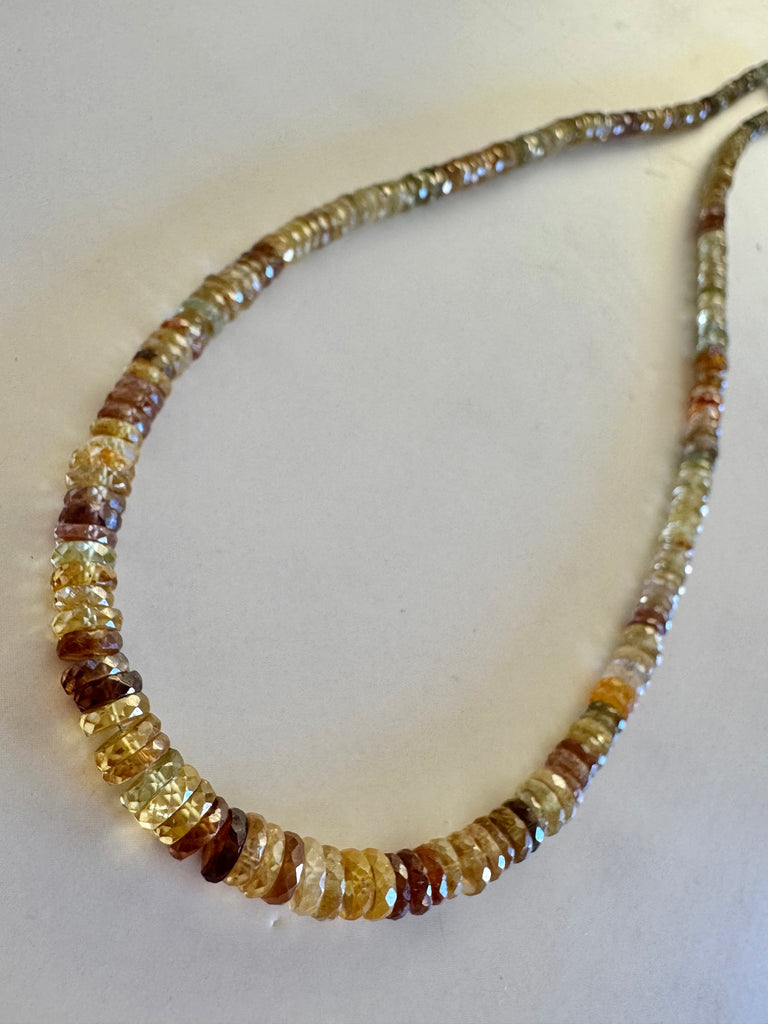 - Beautiful premium smoke topaz beads with AZ heishi turquoise and our exclusive Ganesh coin