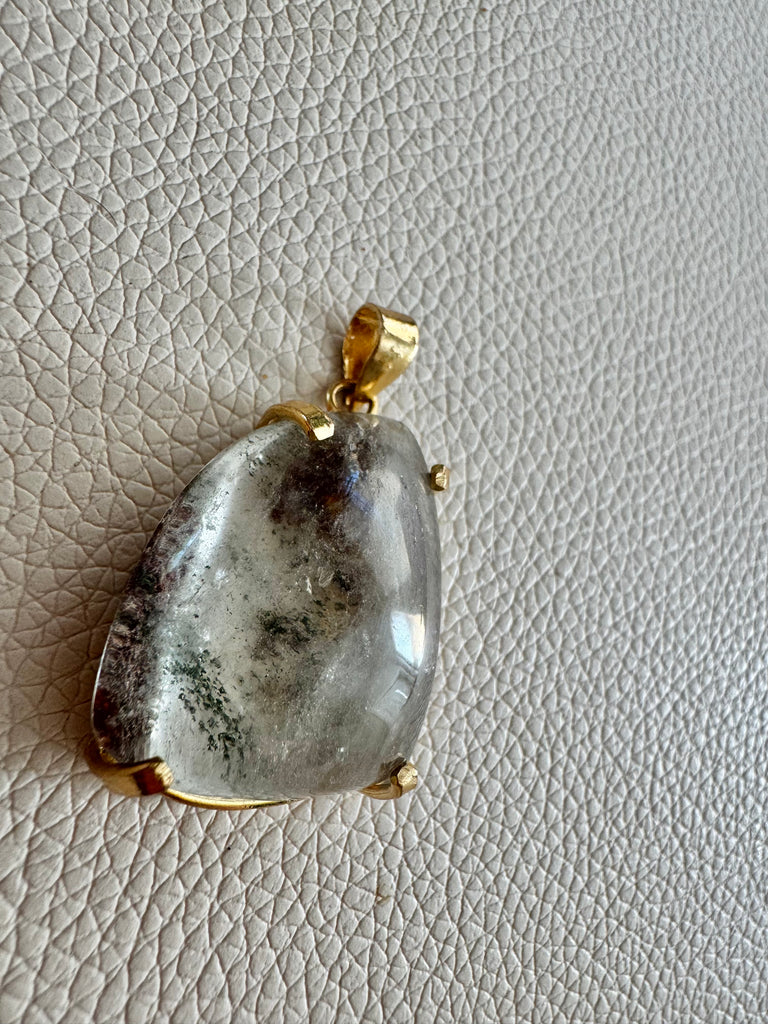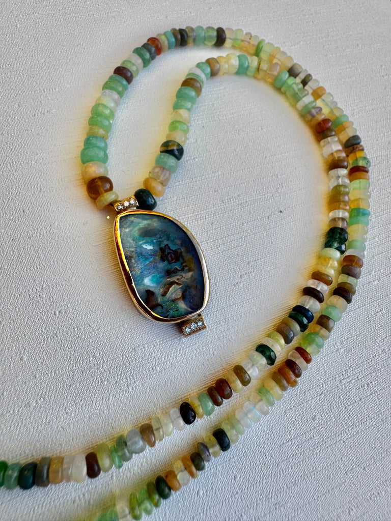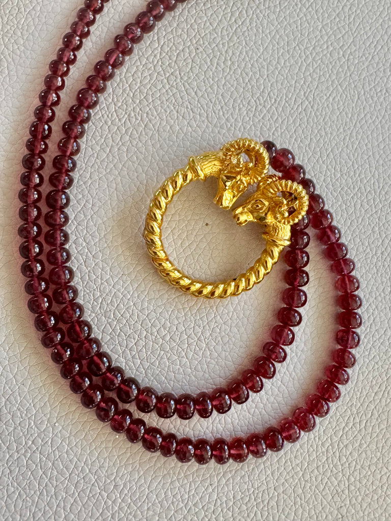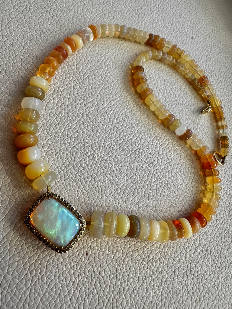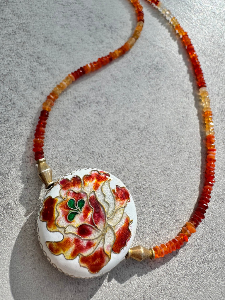 - Beautiful ethnic brown moonstone bead necklace with Indian amulet pendant and moonstone charm