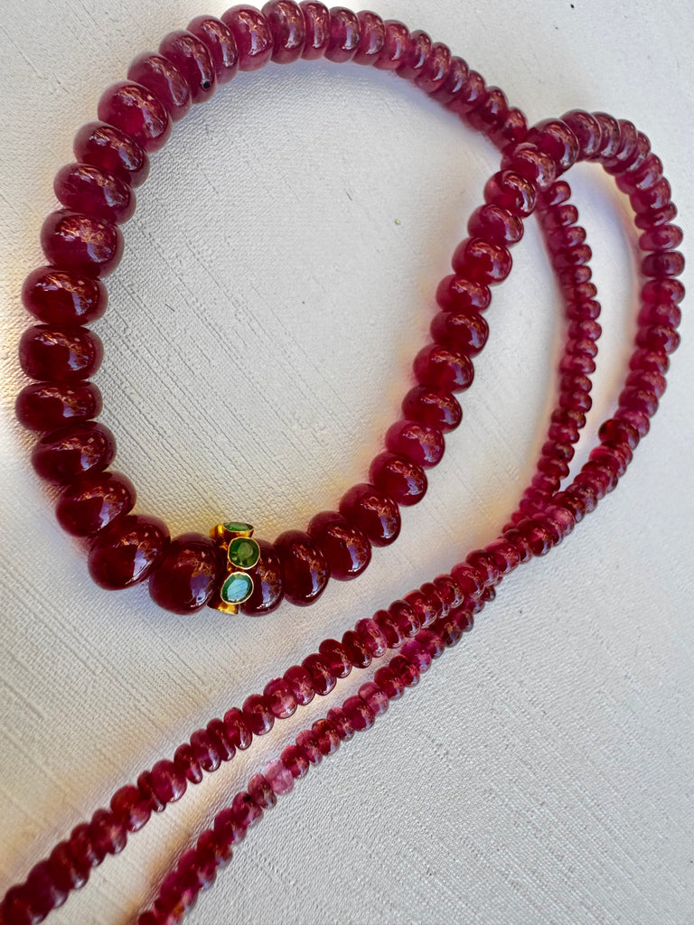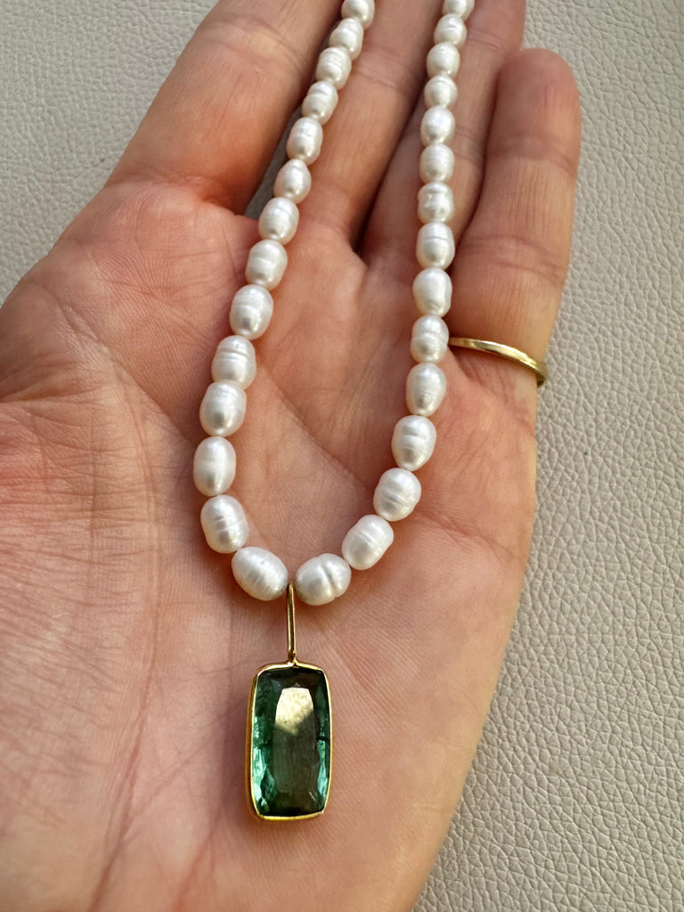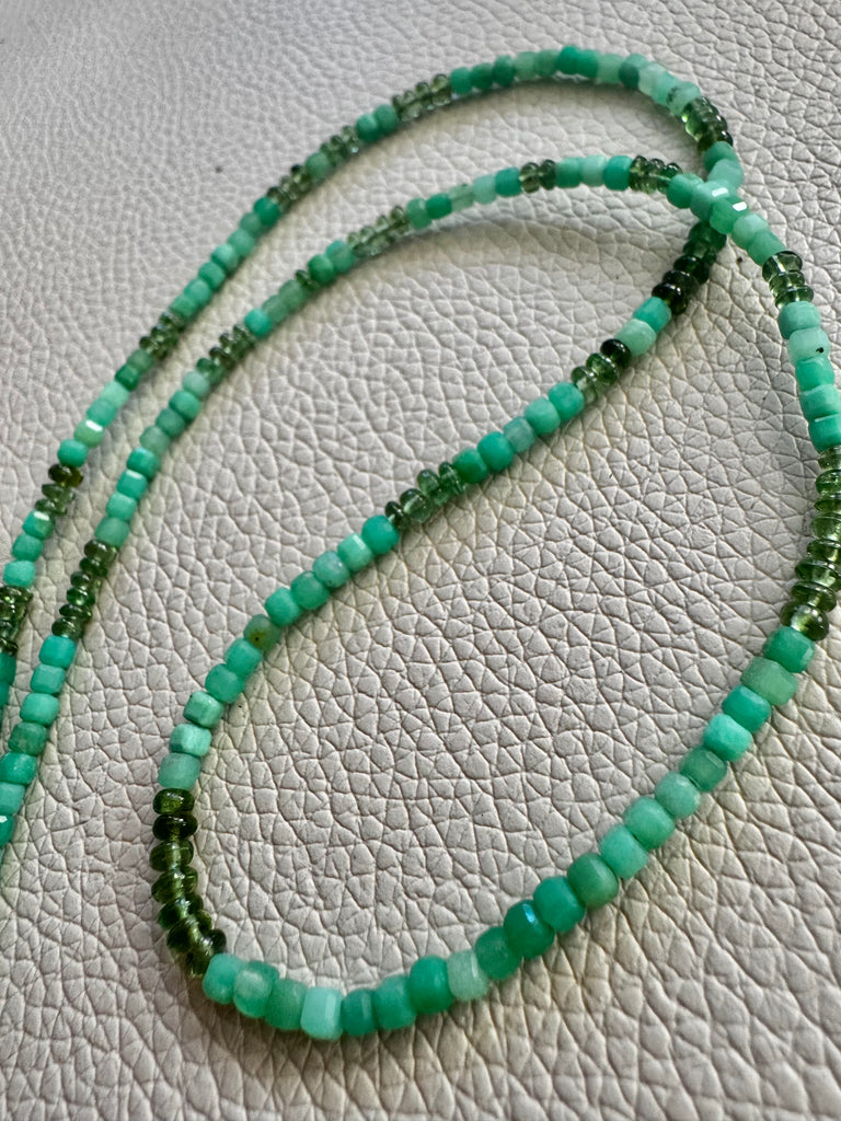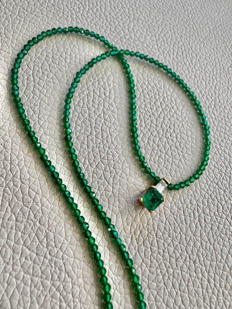 - Striking faceted chrysoprase bead necklace with vermeil Bali beads accents