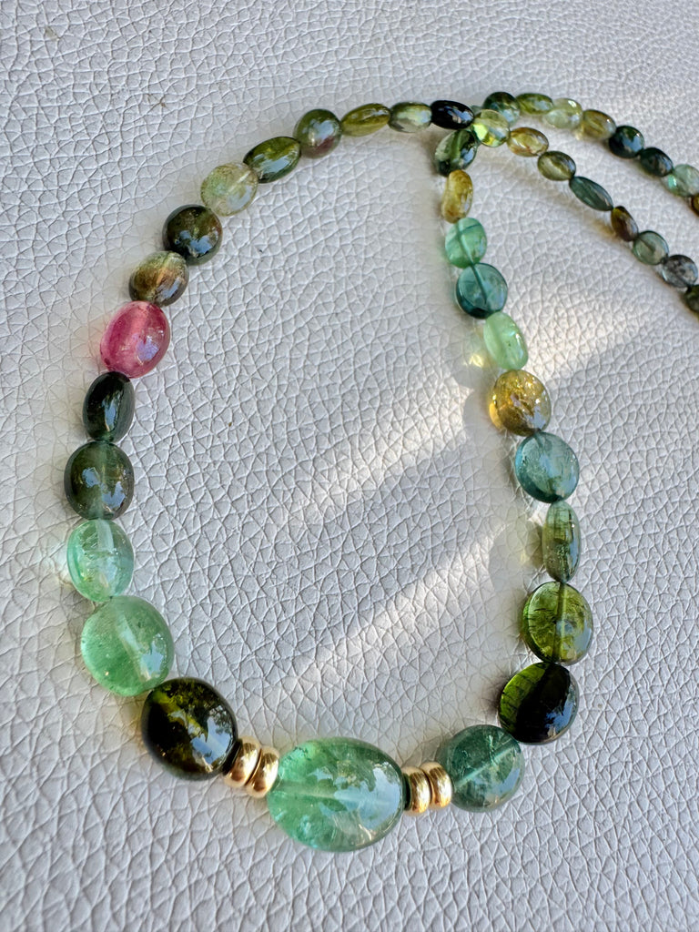 Beautiful AAA green tourmaline necklace with 14KT gold accents