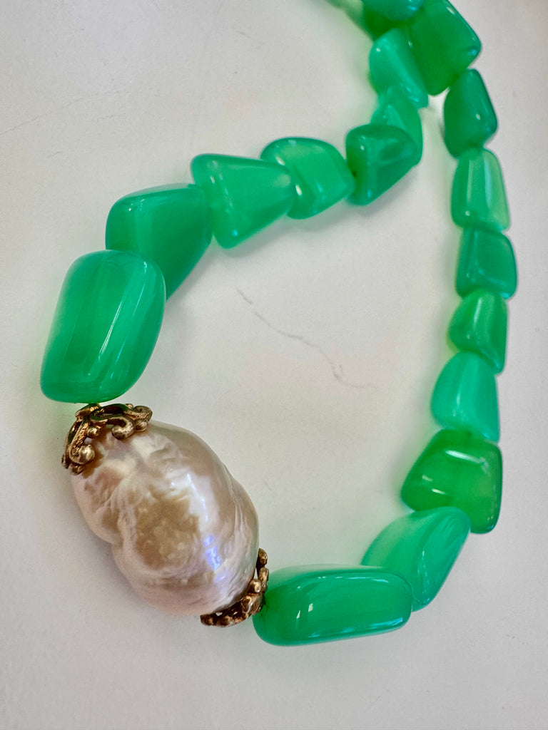 Stunning statement tumbled AAA chrysoprase beads with Edison baroque pearl