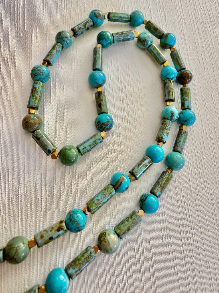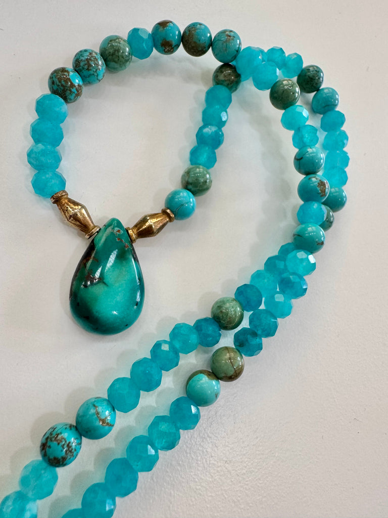 Stunning Nevada turquoise and amazonite bead necklace with Arizona turquoise drop