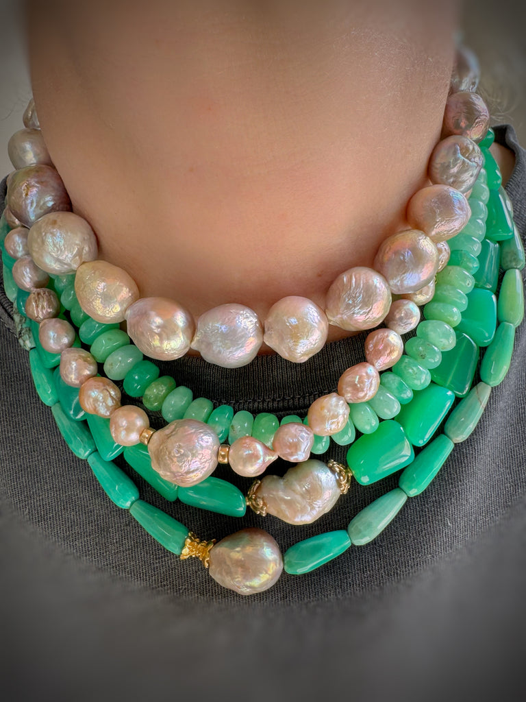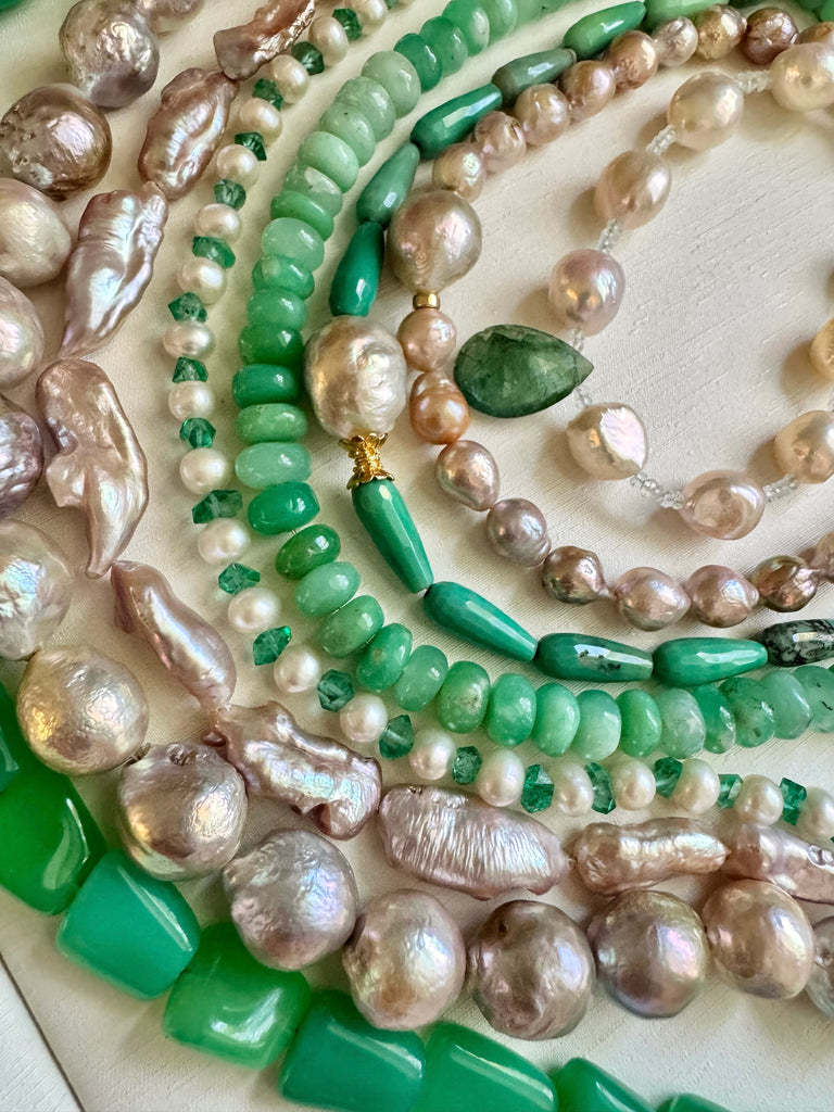 Beautiful statement grassy agate bead necklace with freshwater Edison baroque pearl
