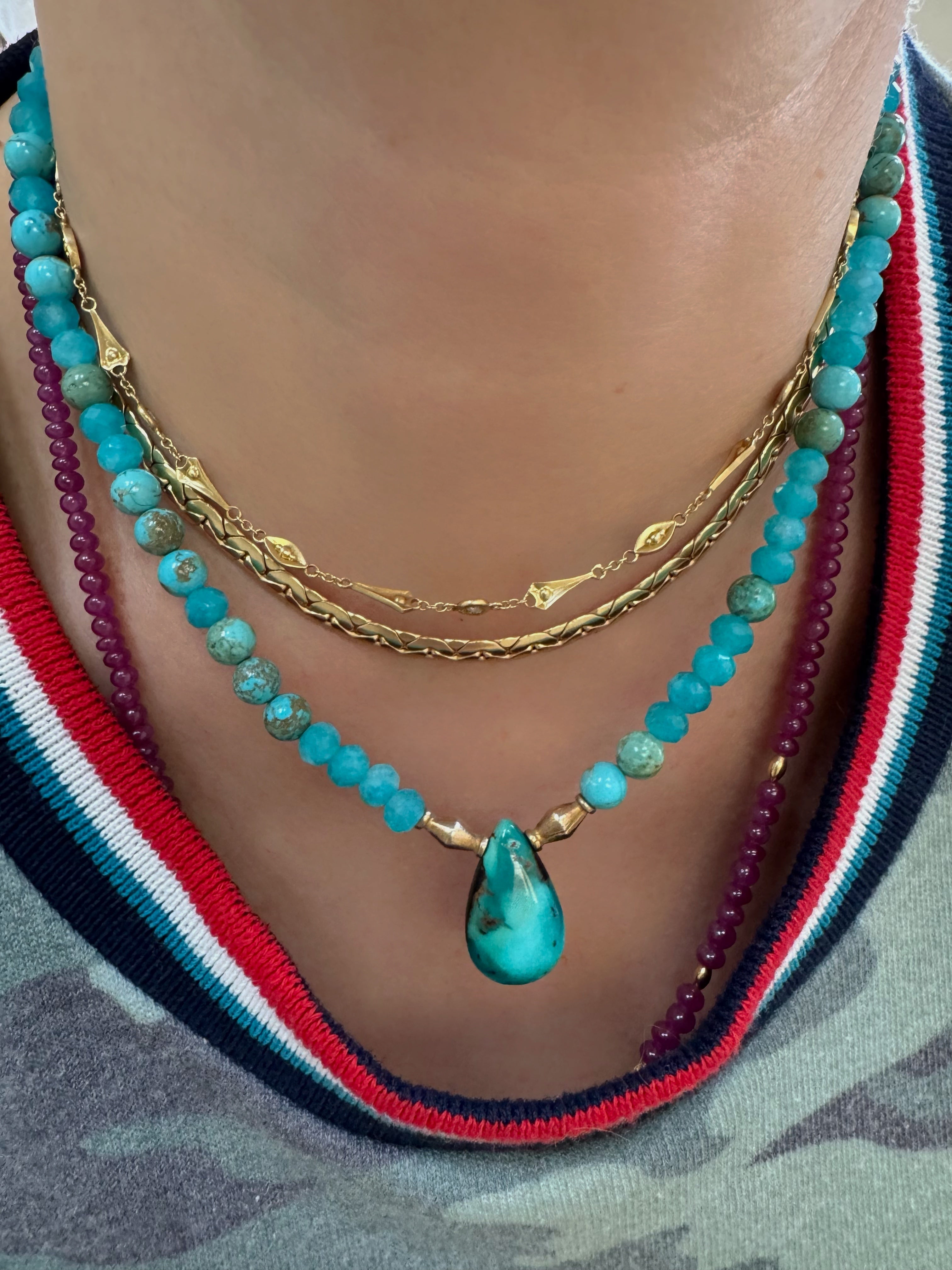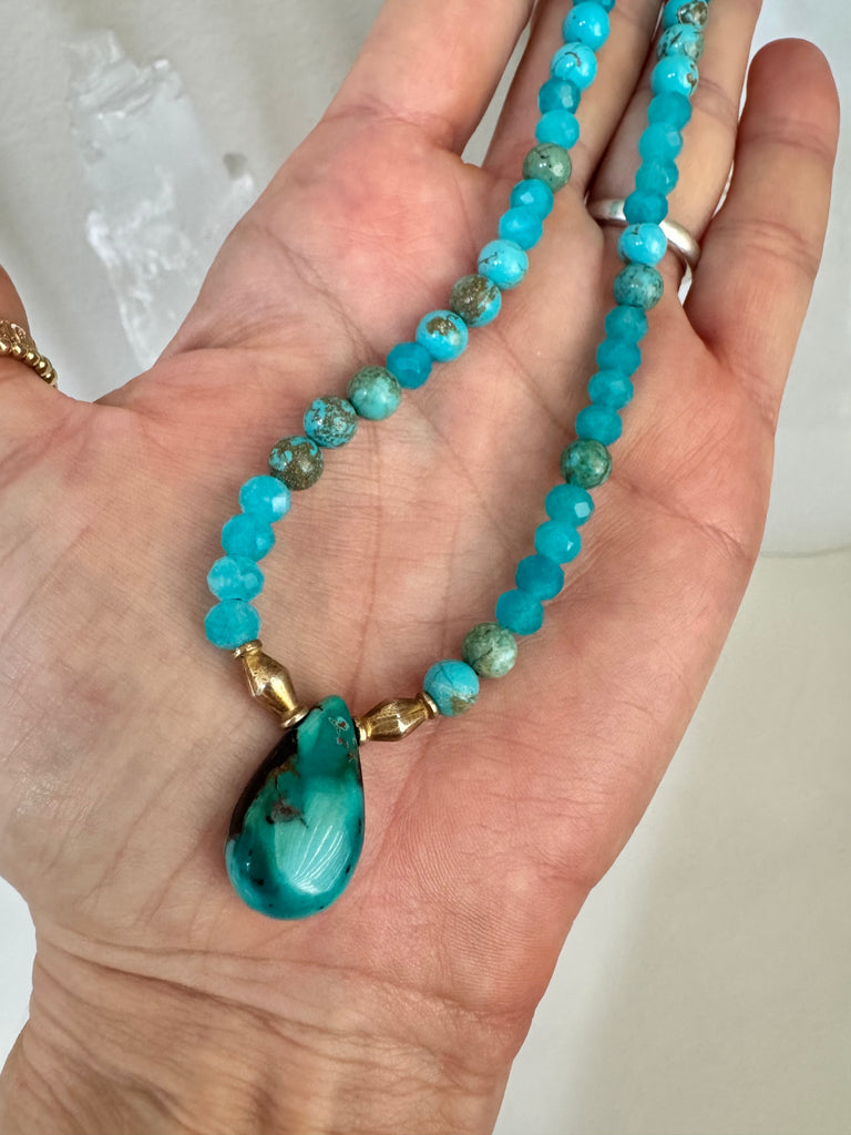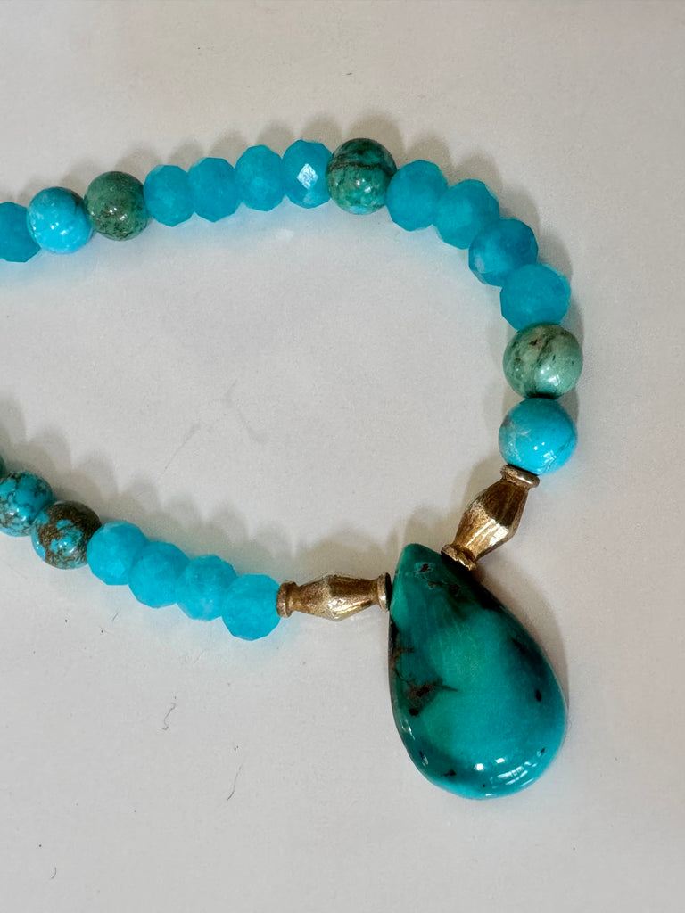 Stunning Nevada turquoise and amazonite bead necklace with Arizona turquoise drop