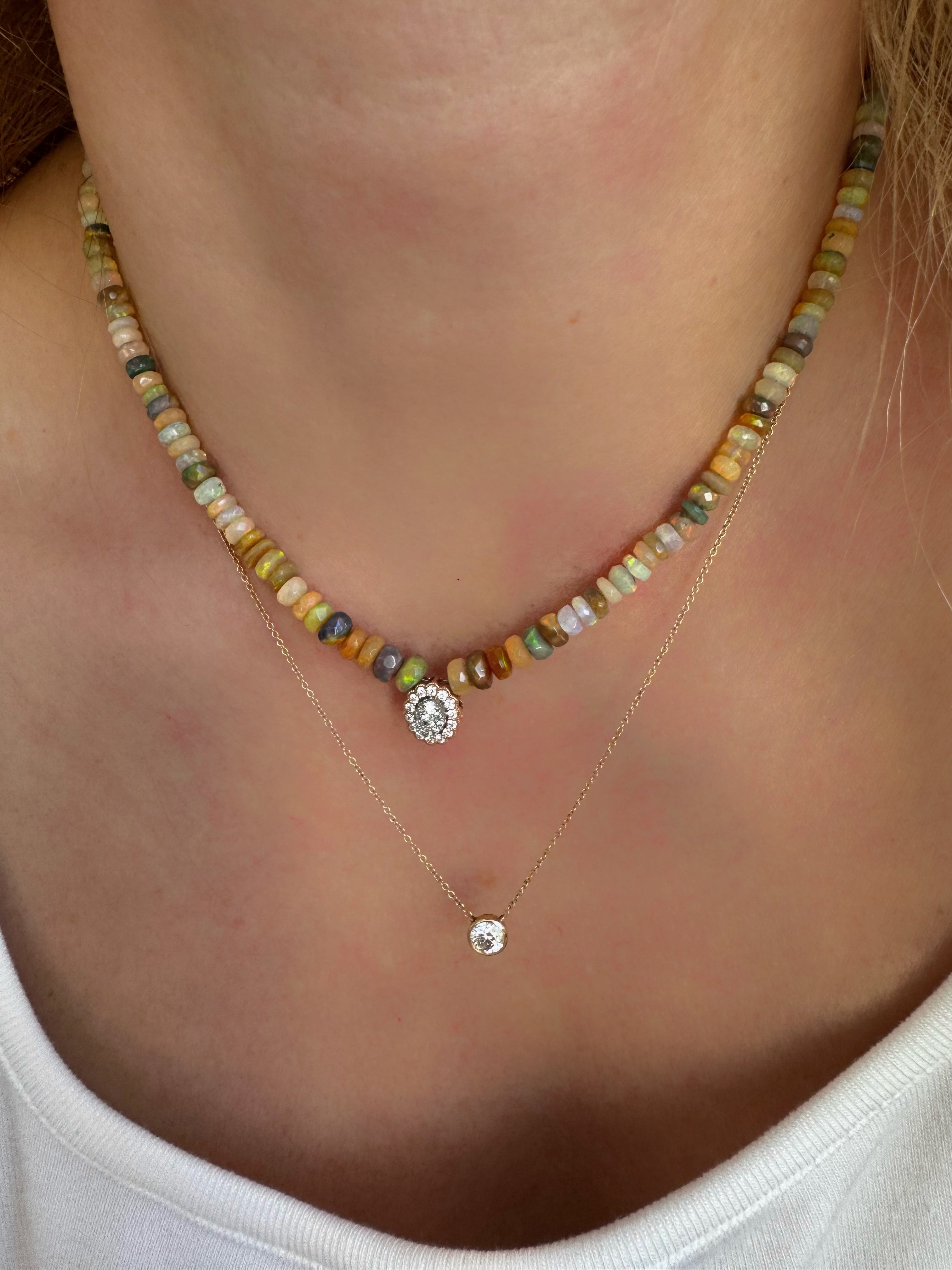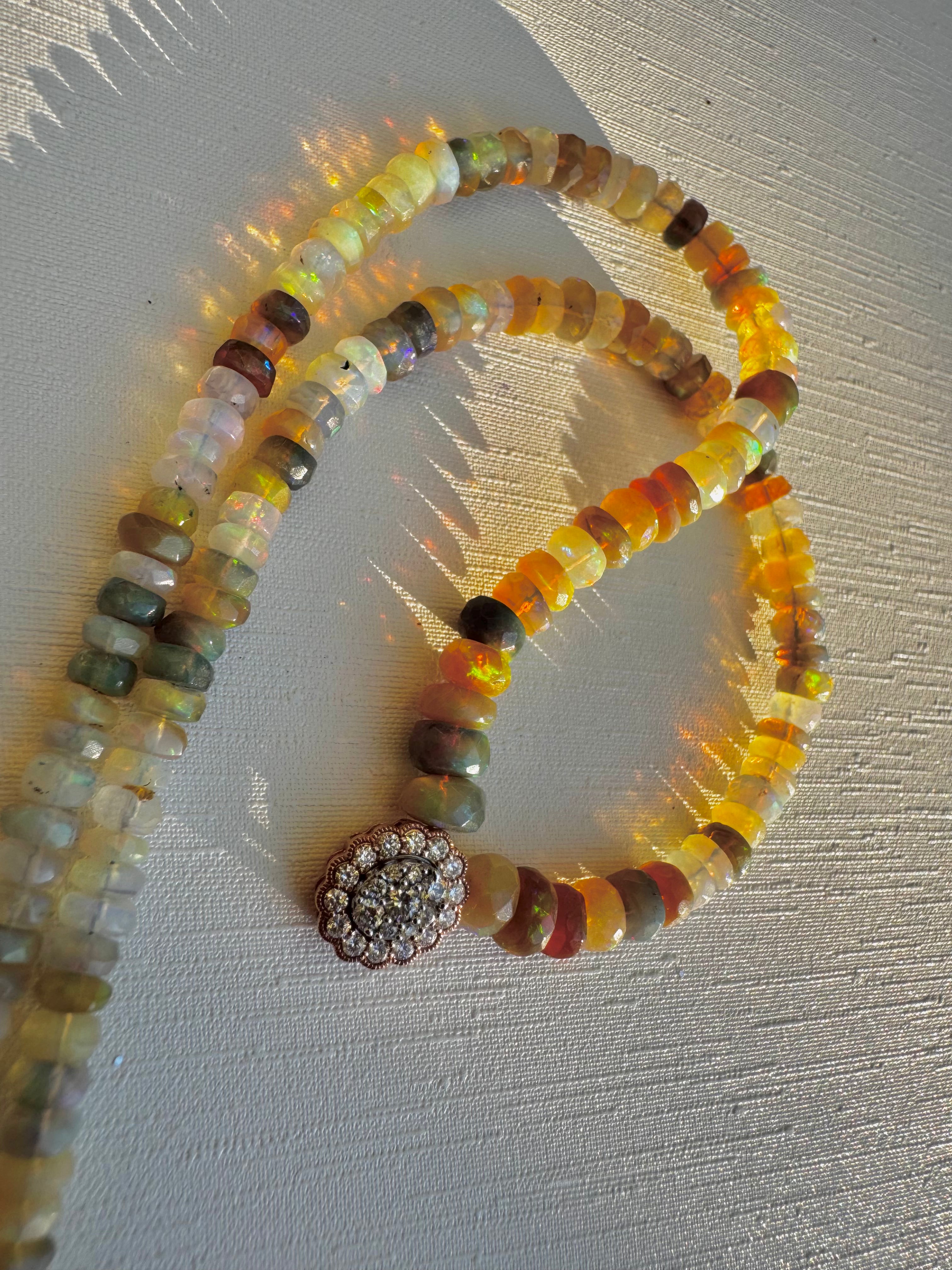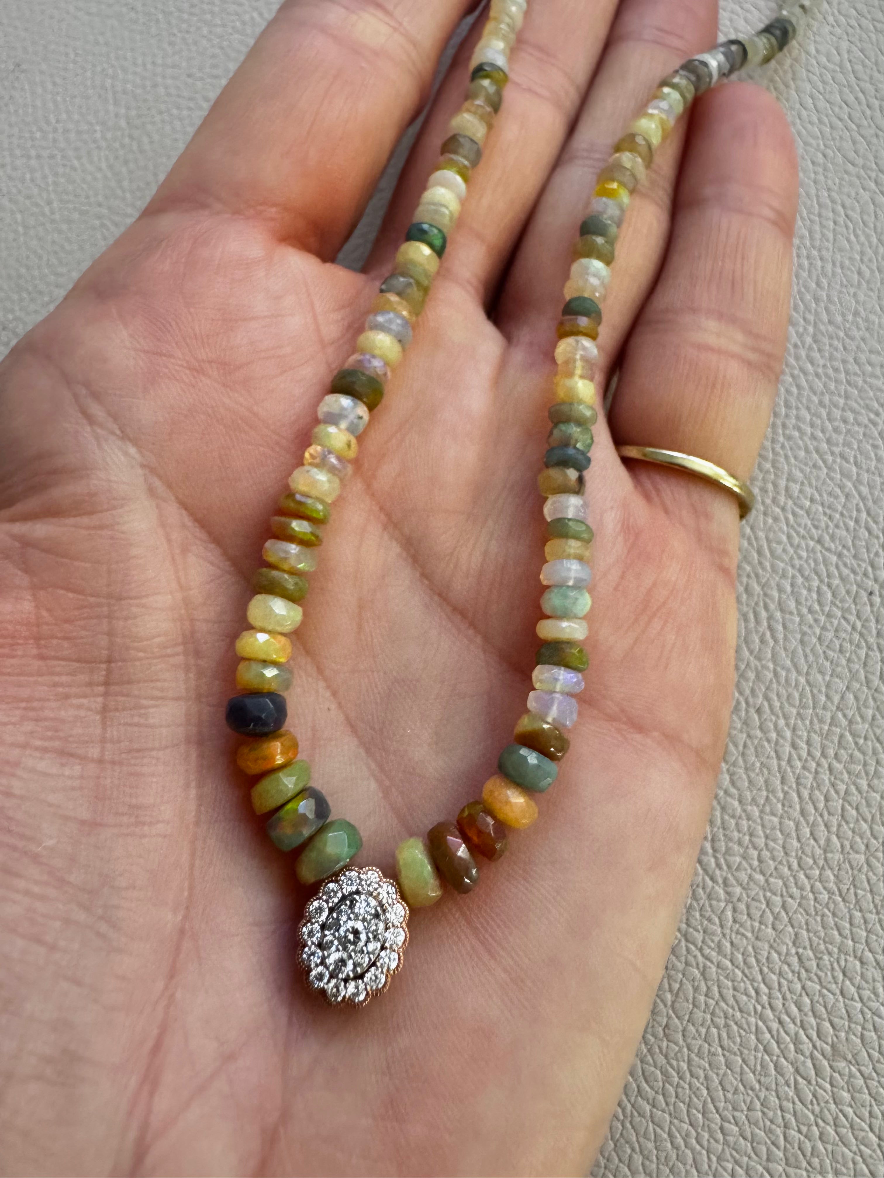 Beautiful Ethiopian opal necklace with 14KT gold and diamond charm
