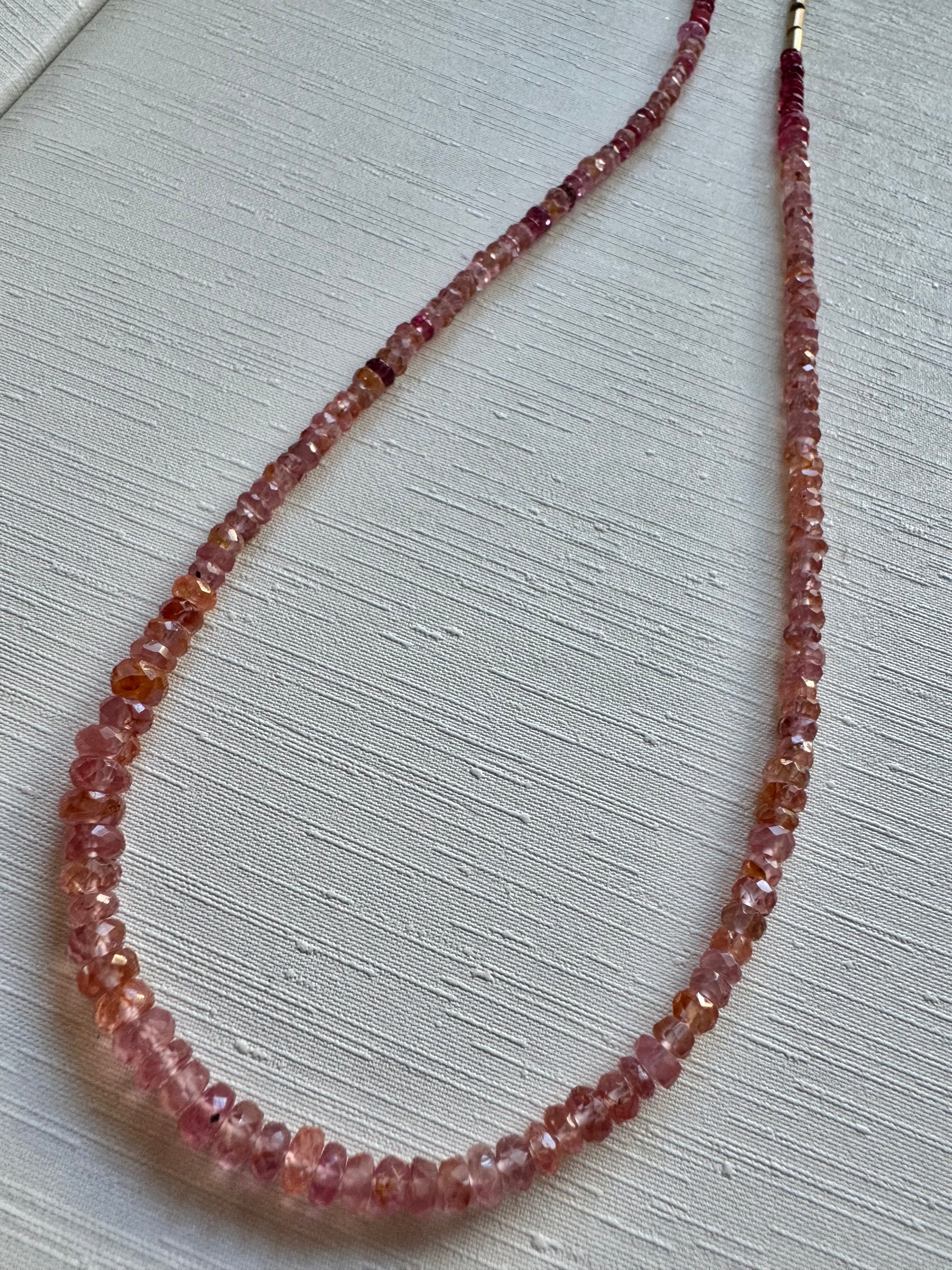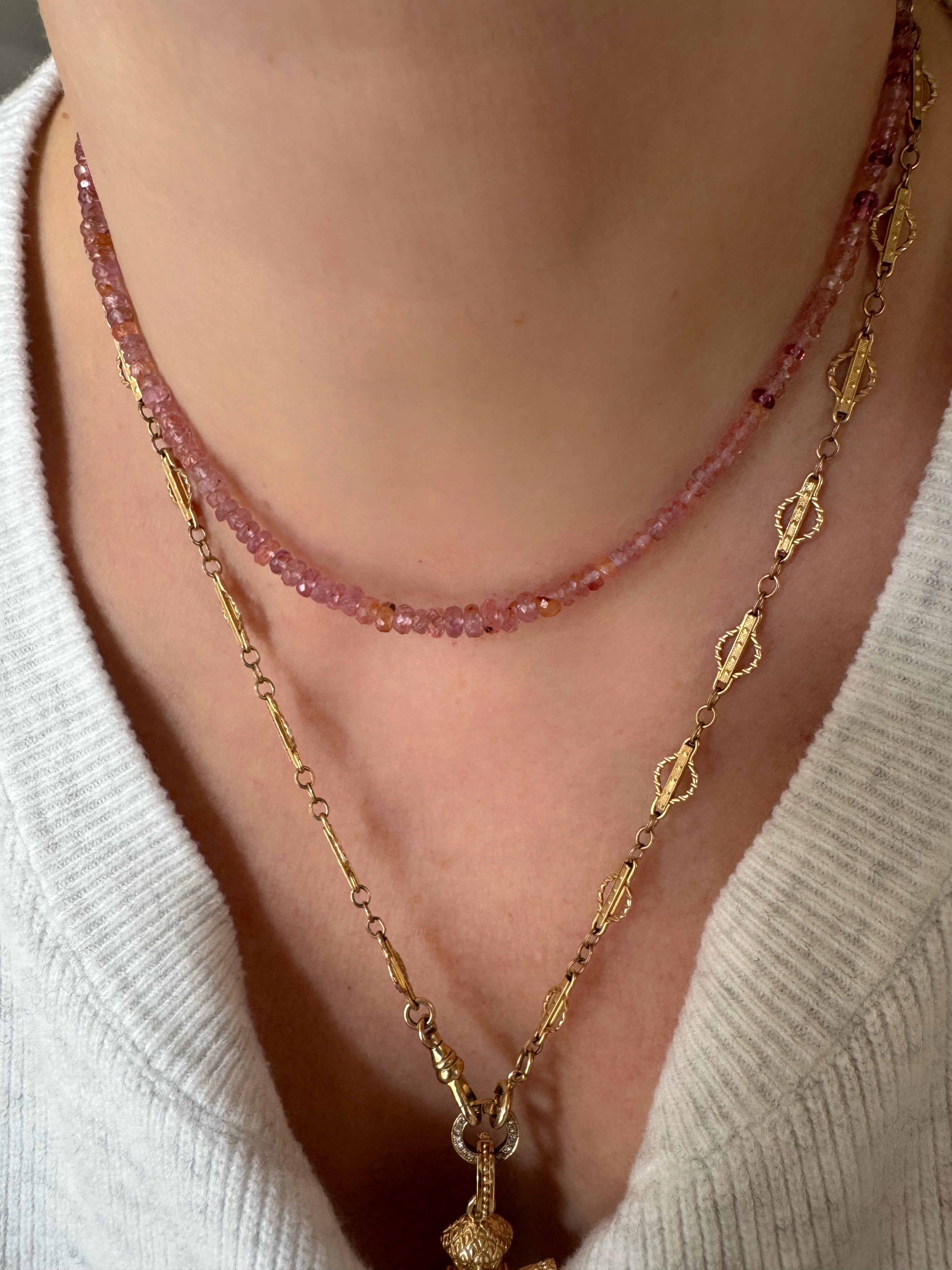 Sweet minimal pink spinel layering necklace. Feminine and sweet, easy to layer. Great alone too. Pretty pink plush hues. Gold filled findings.