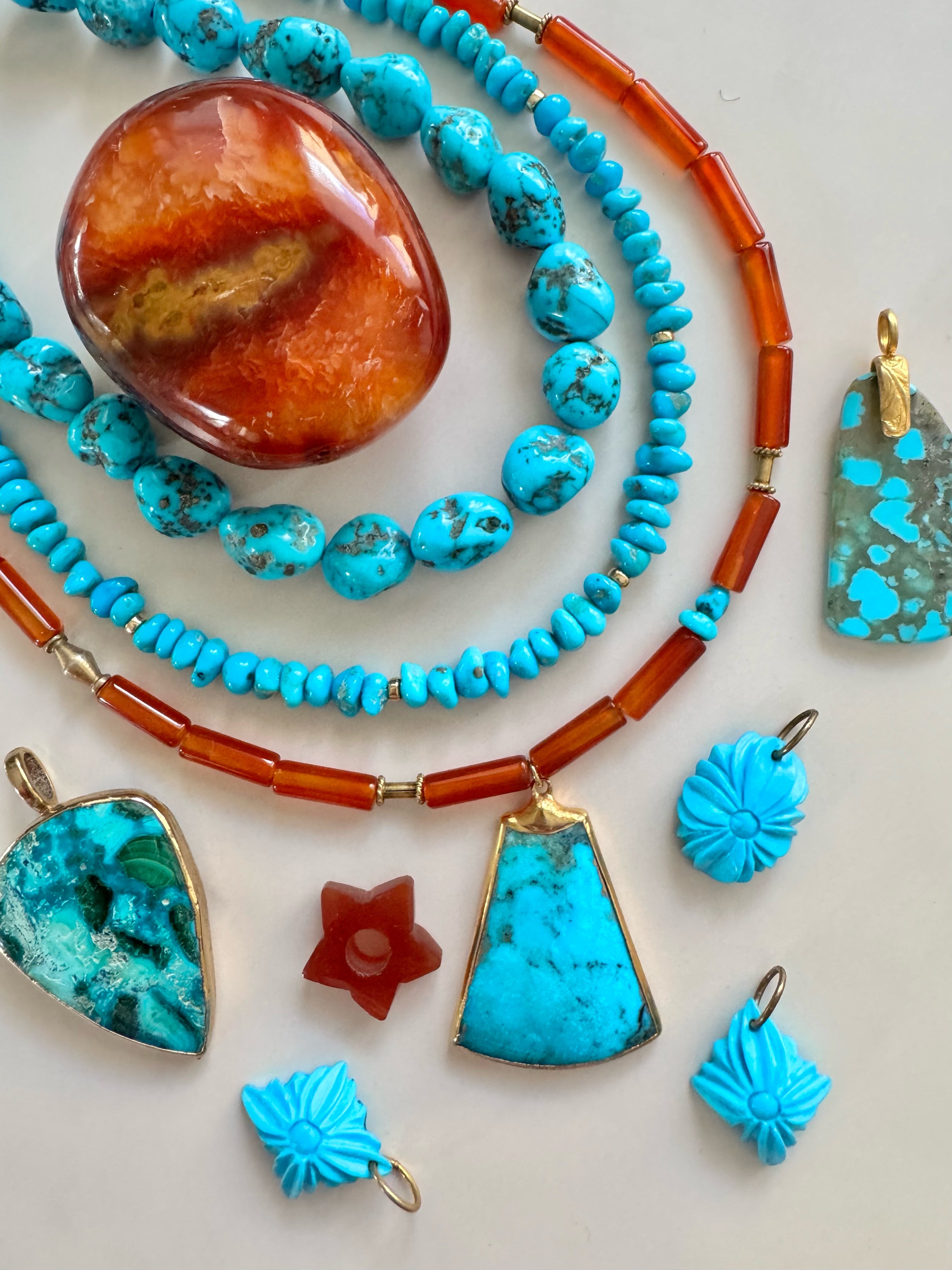 Beautiful hand carved turquoise charm/pendant with vermeil bail