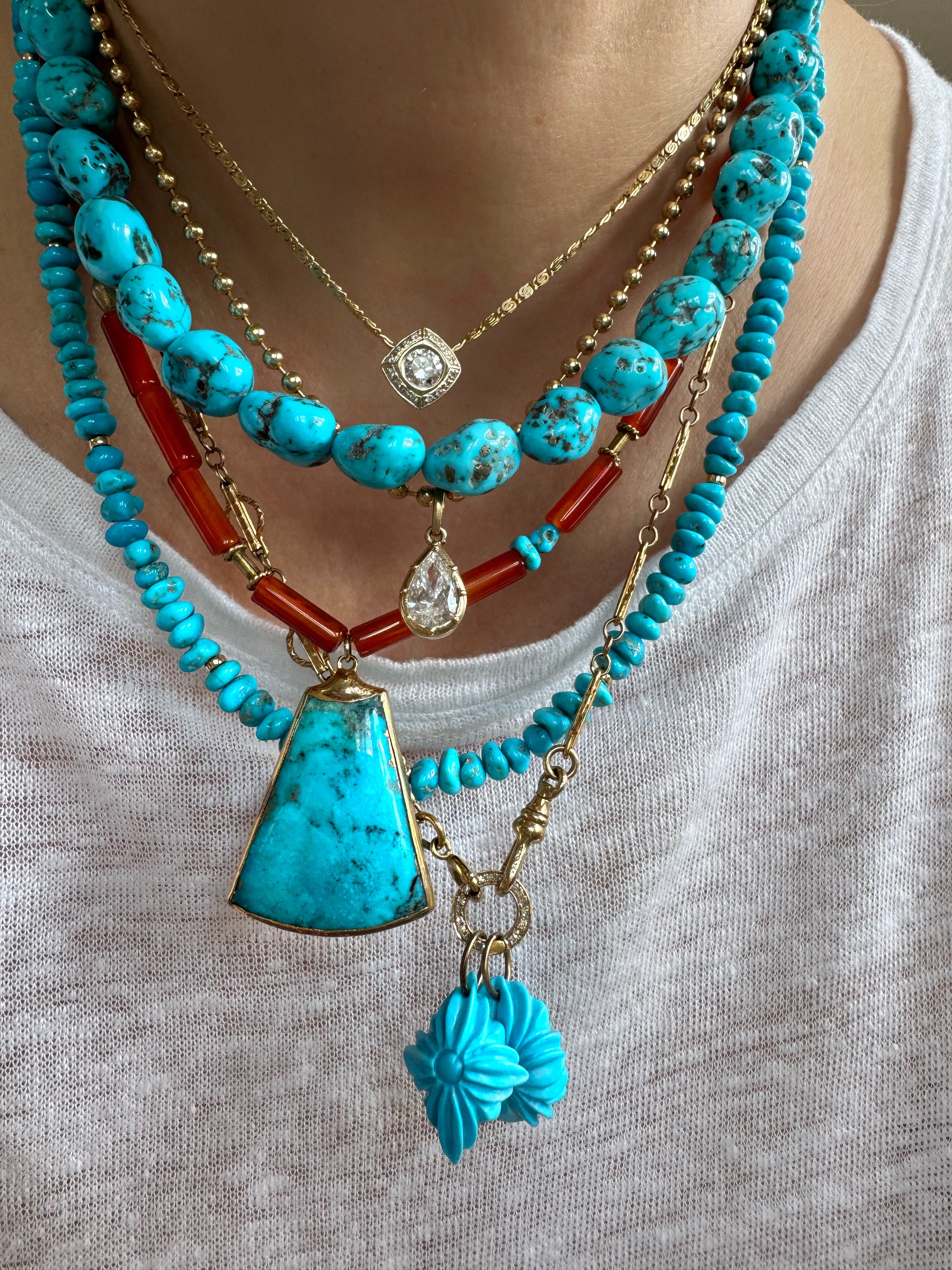 Beautiful hand carved genuine turquoise charm/pendant with vermeil bail. Great worn alone as pendant or as charm.