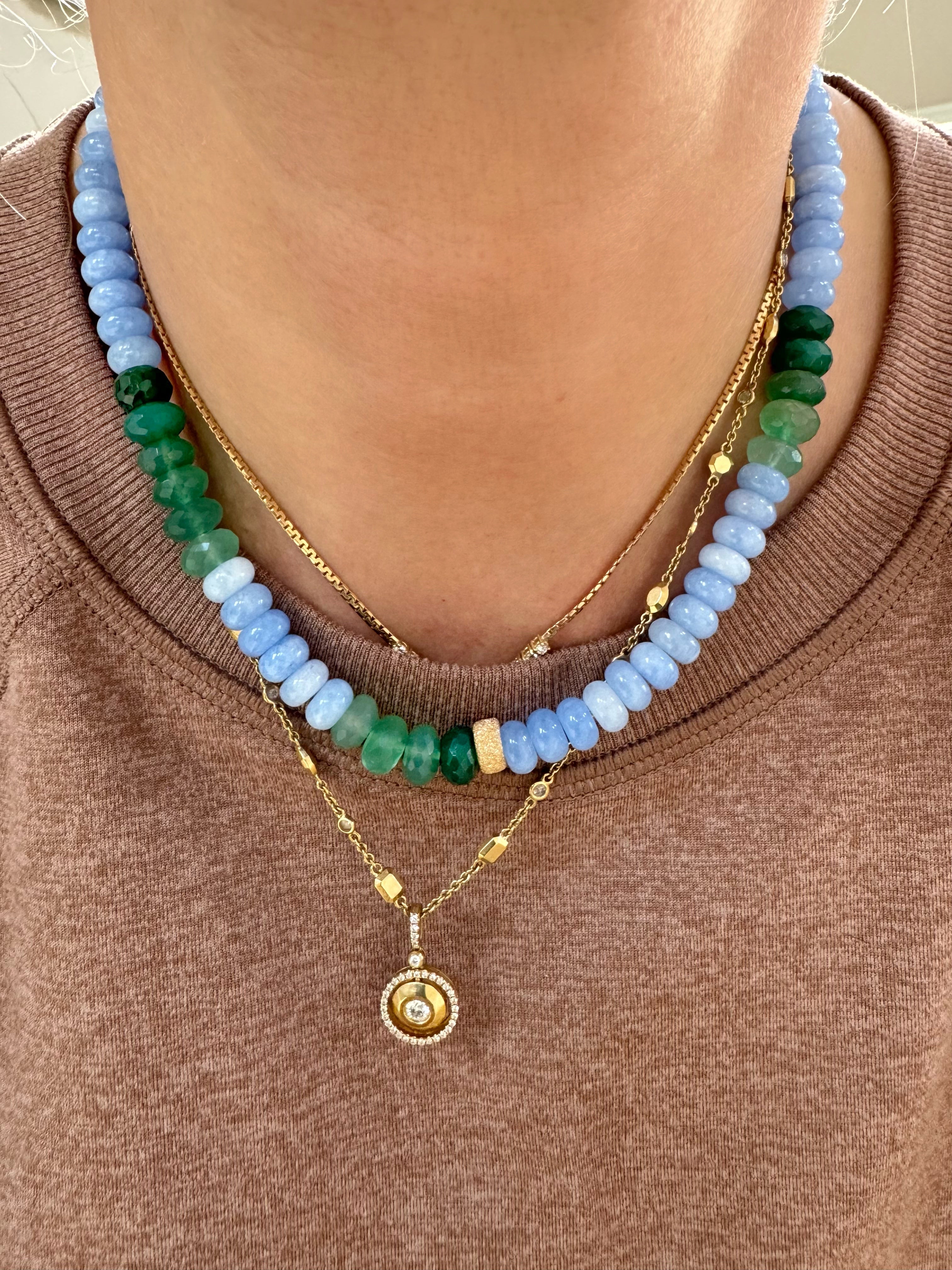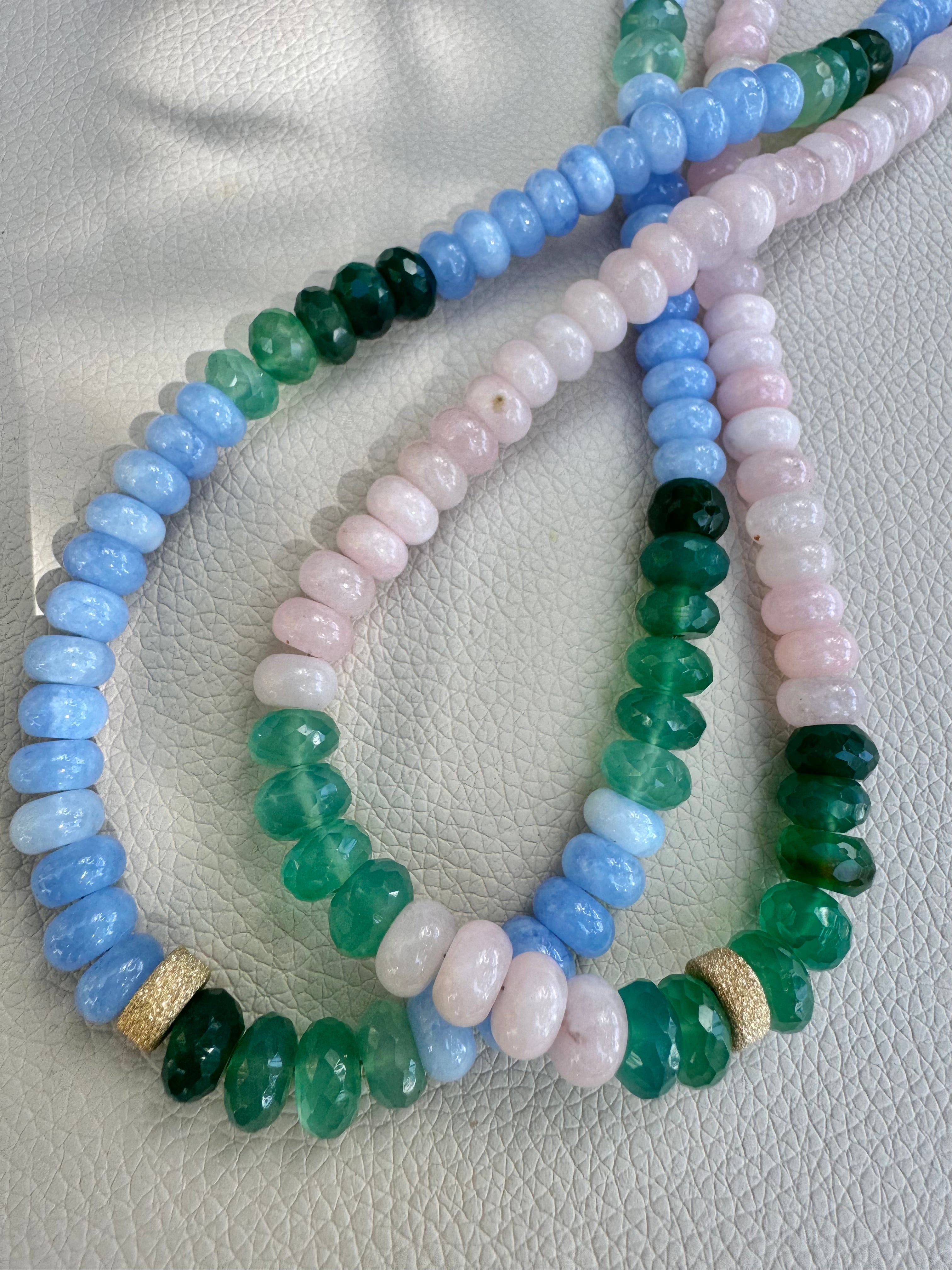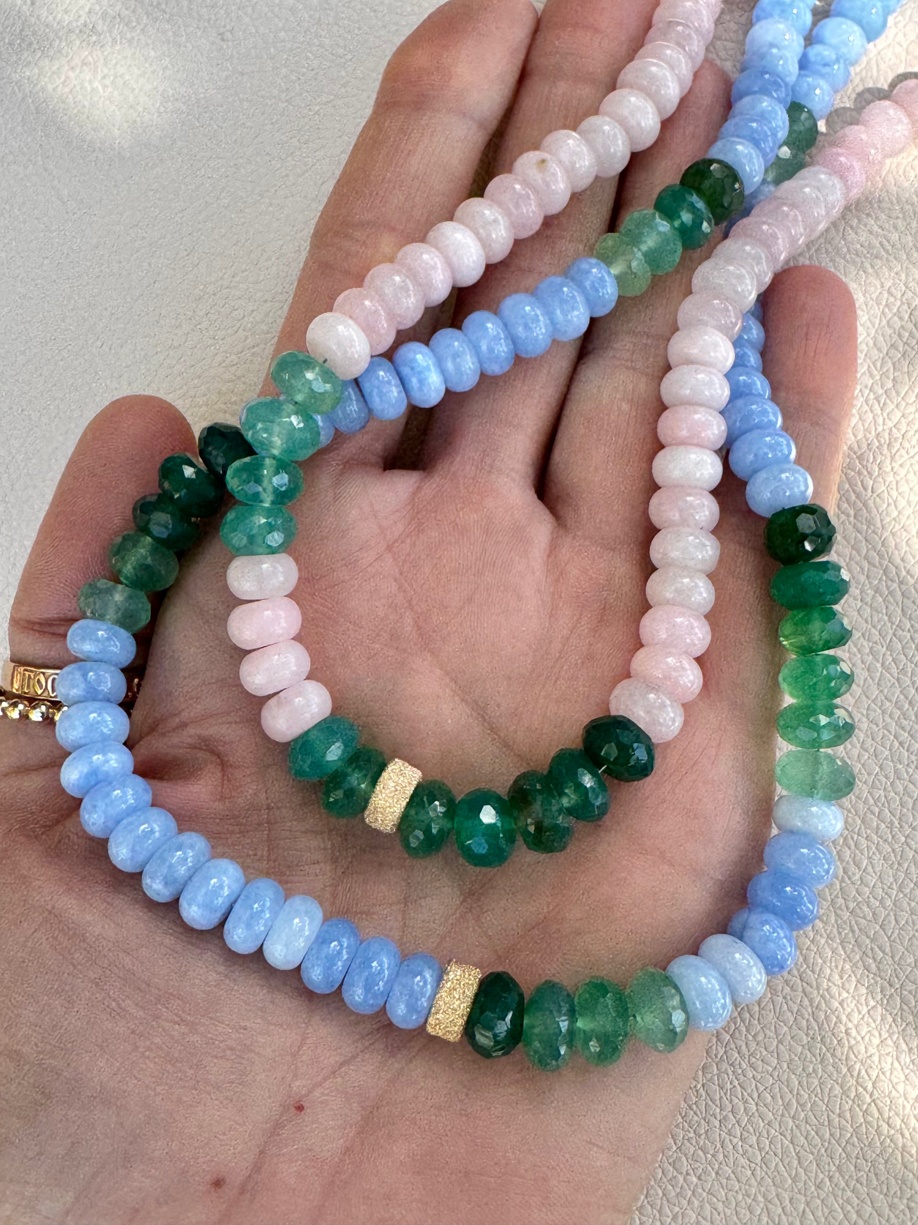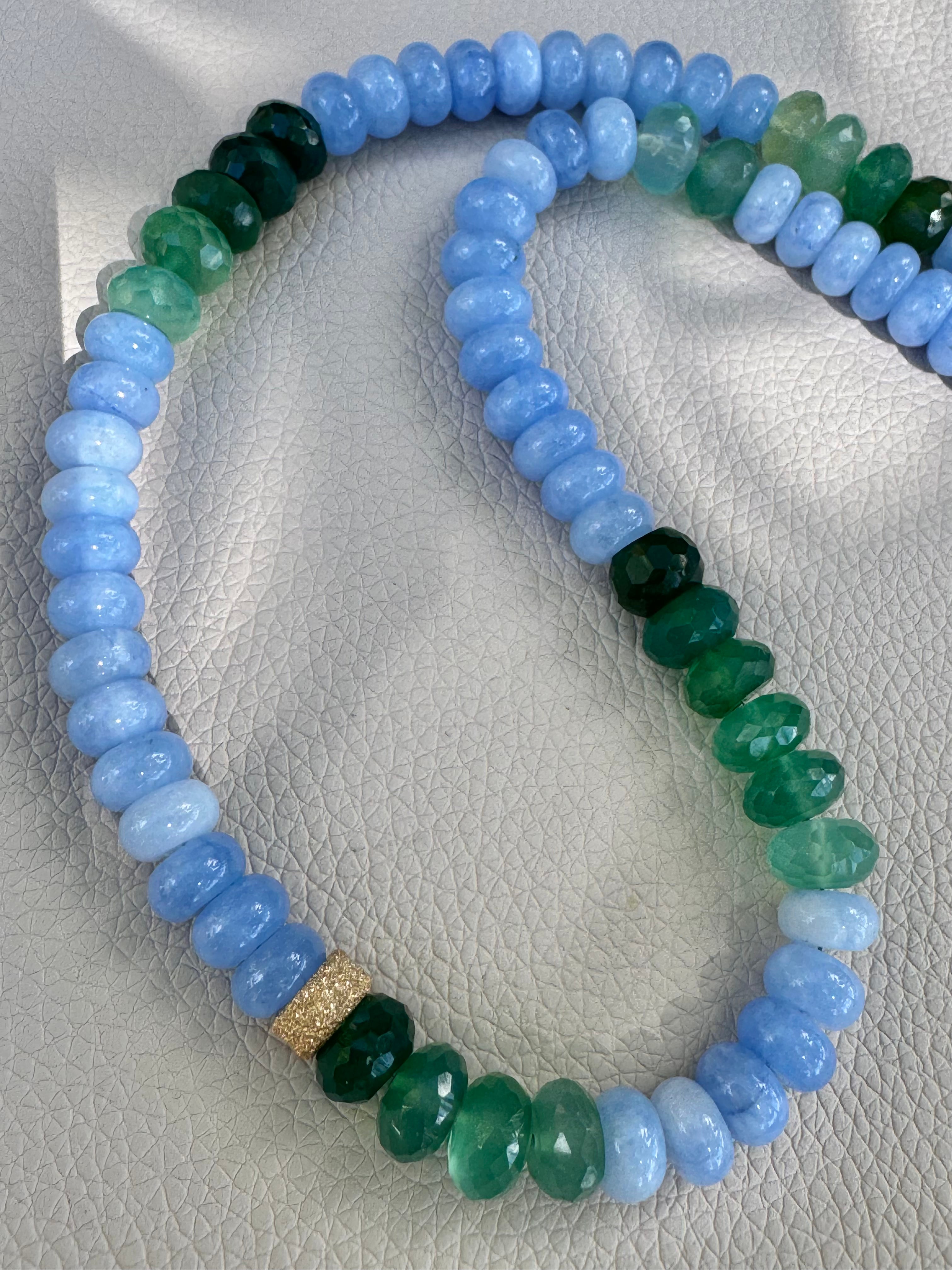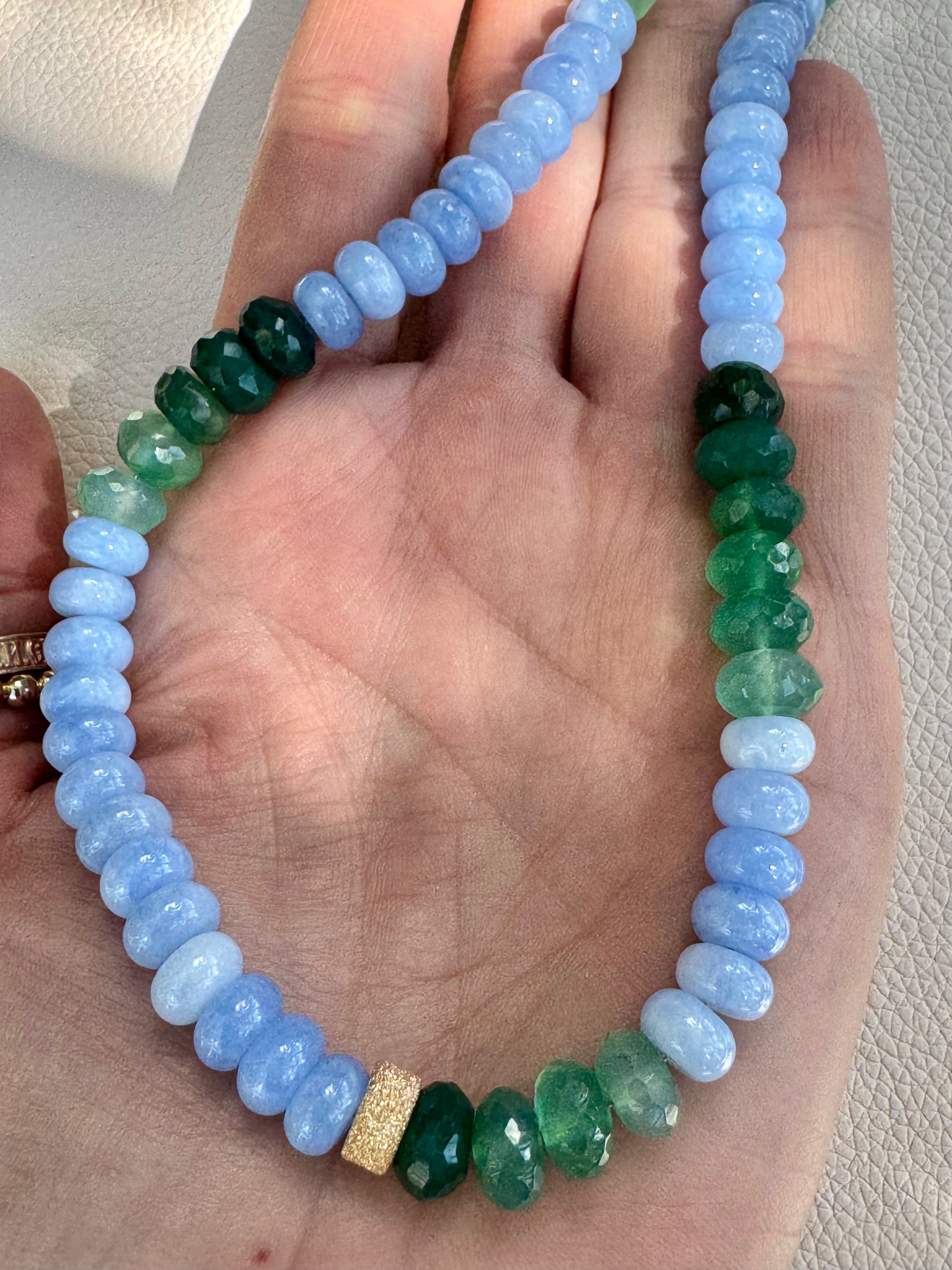 Gorgeous periwinkle jade with shaded green onyx candy necklace w/star dust vermeil rondelle accent