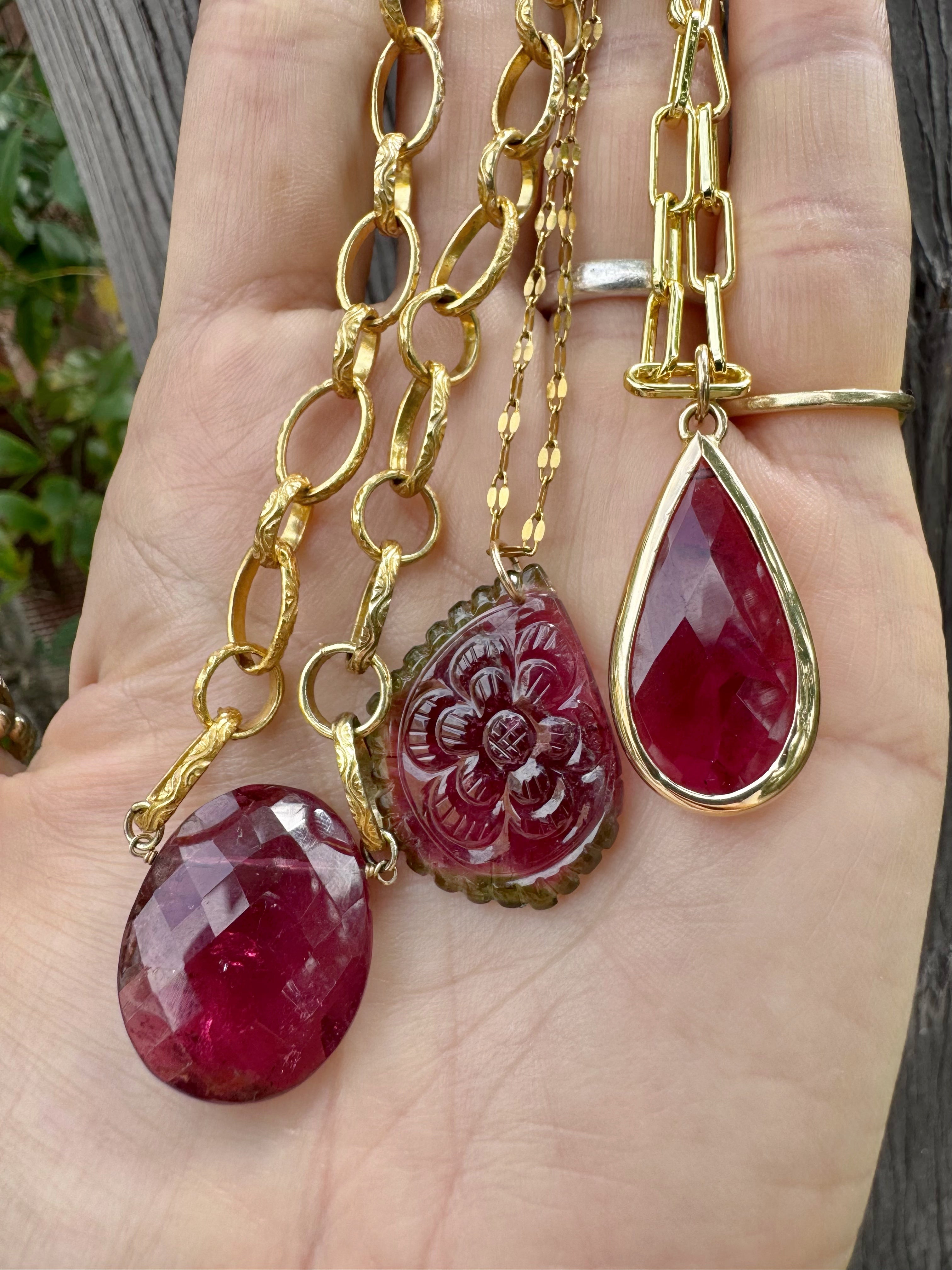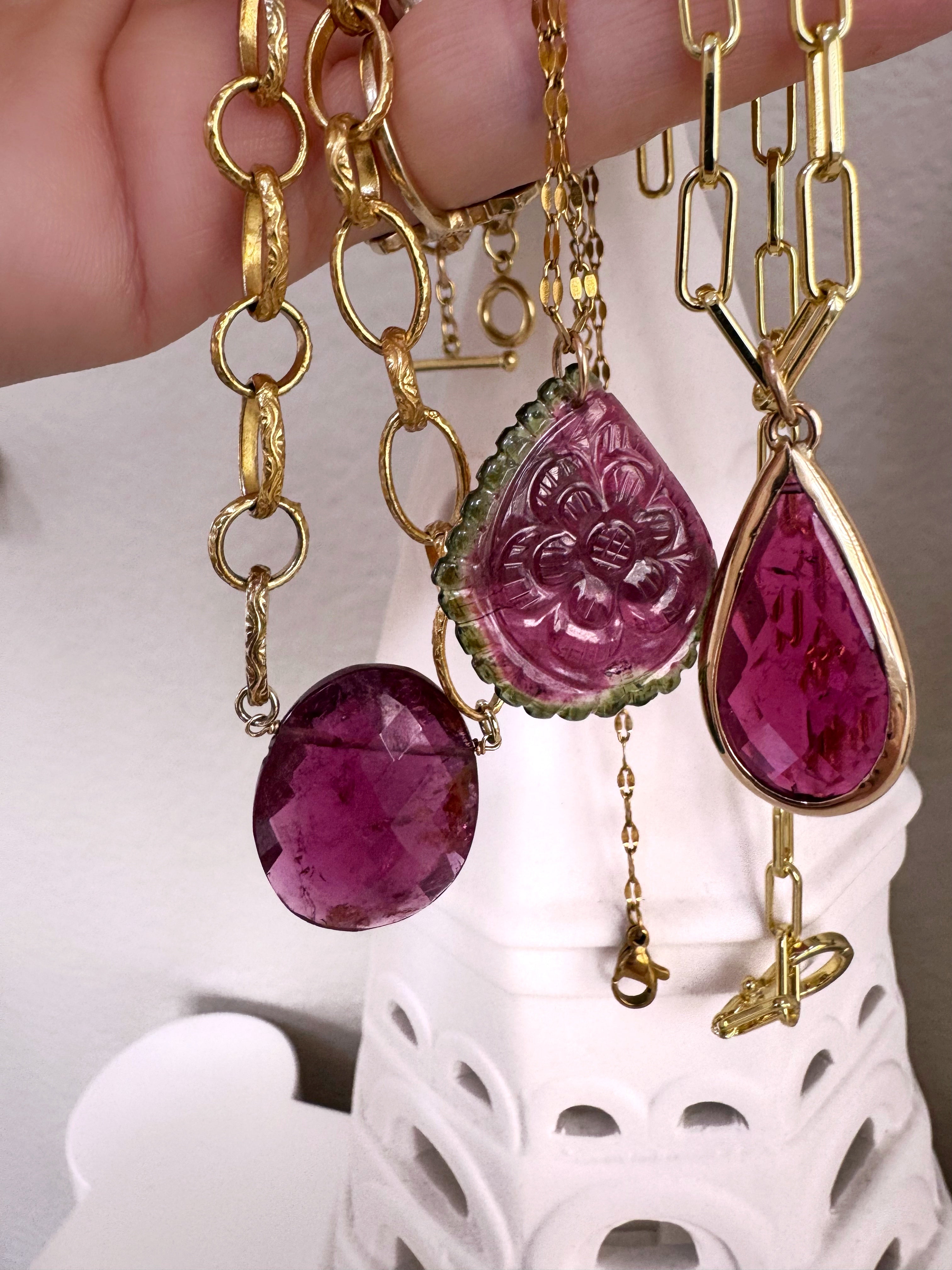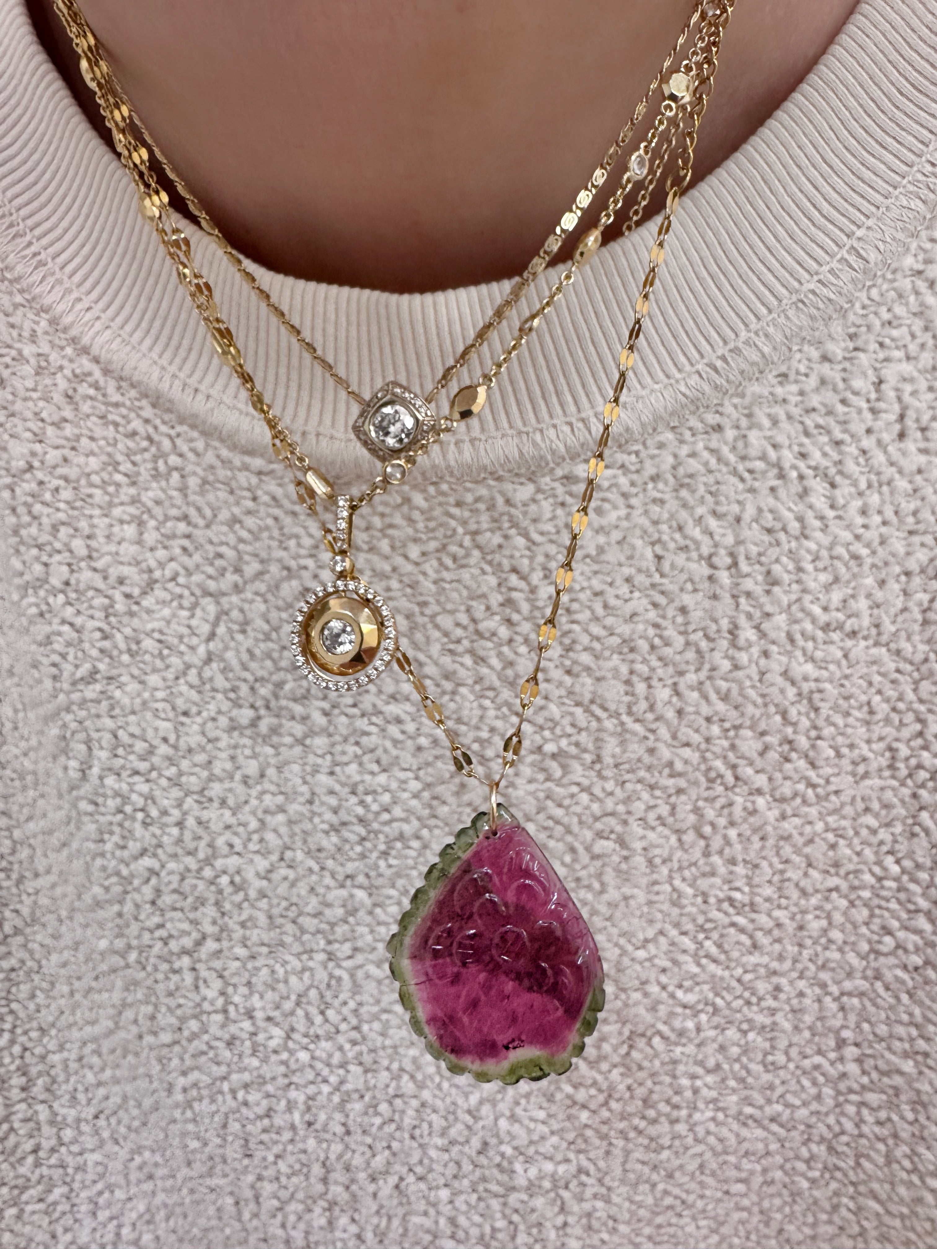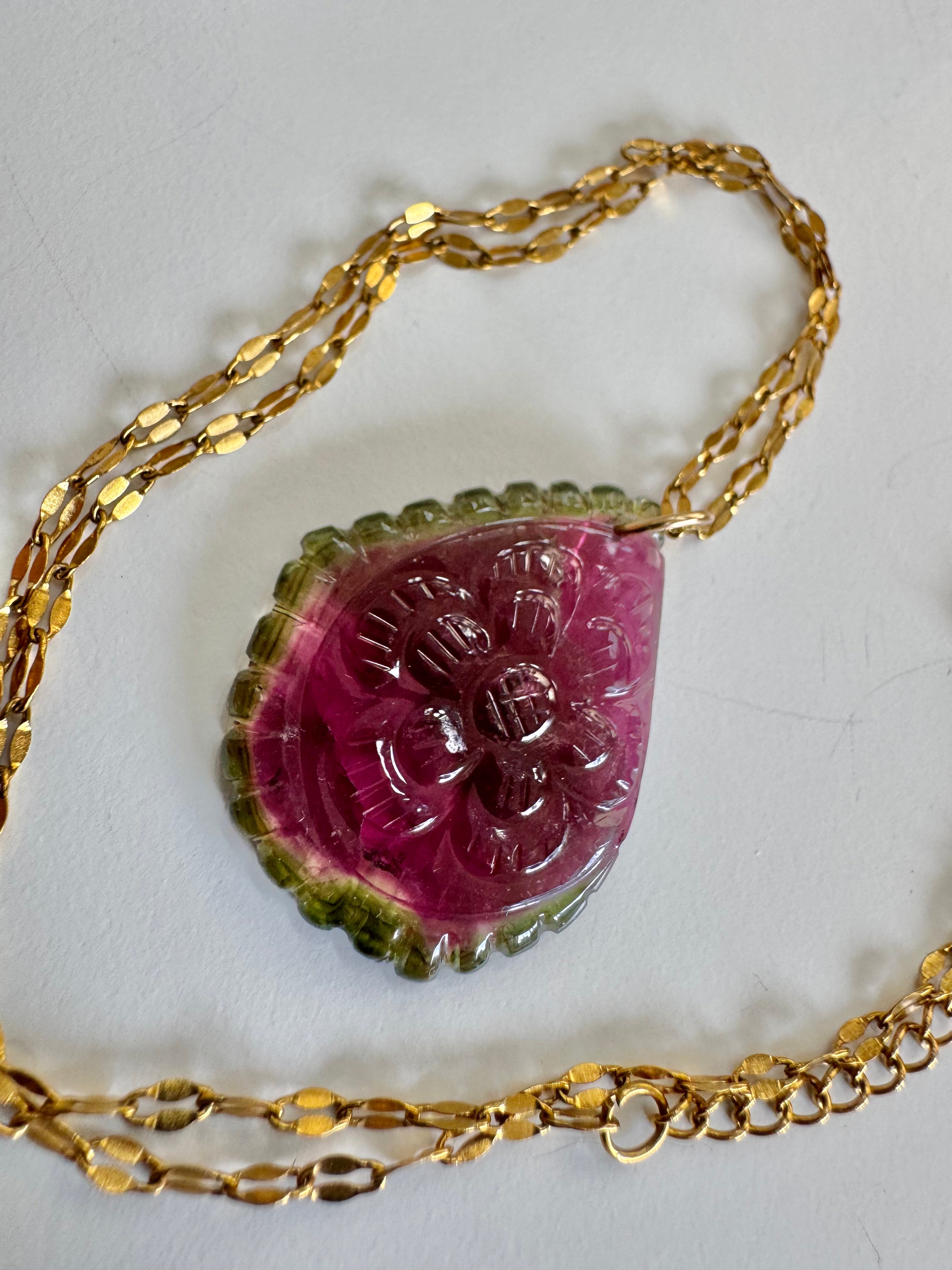 Stunning AAA hand carved watermelon tourmaline slice pendant