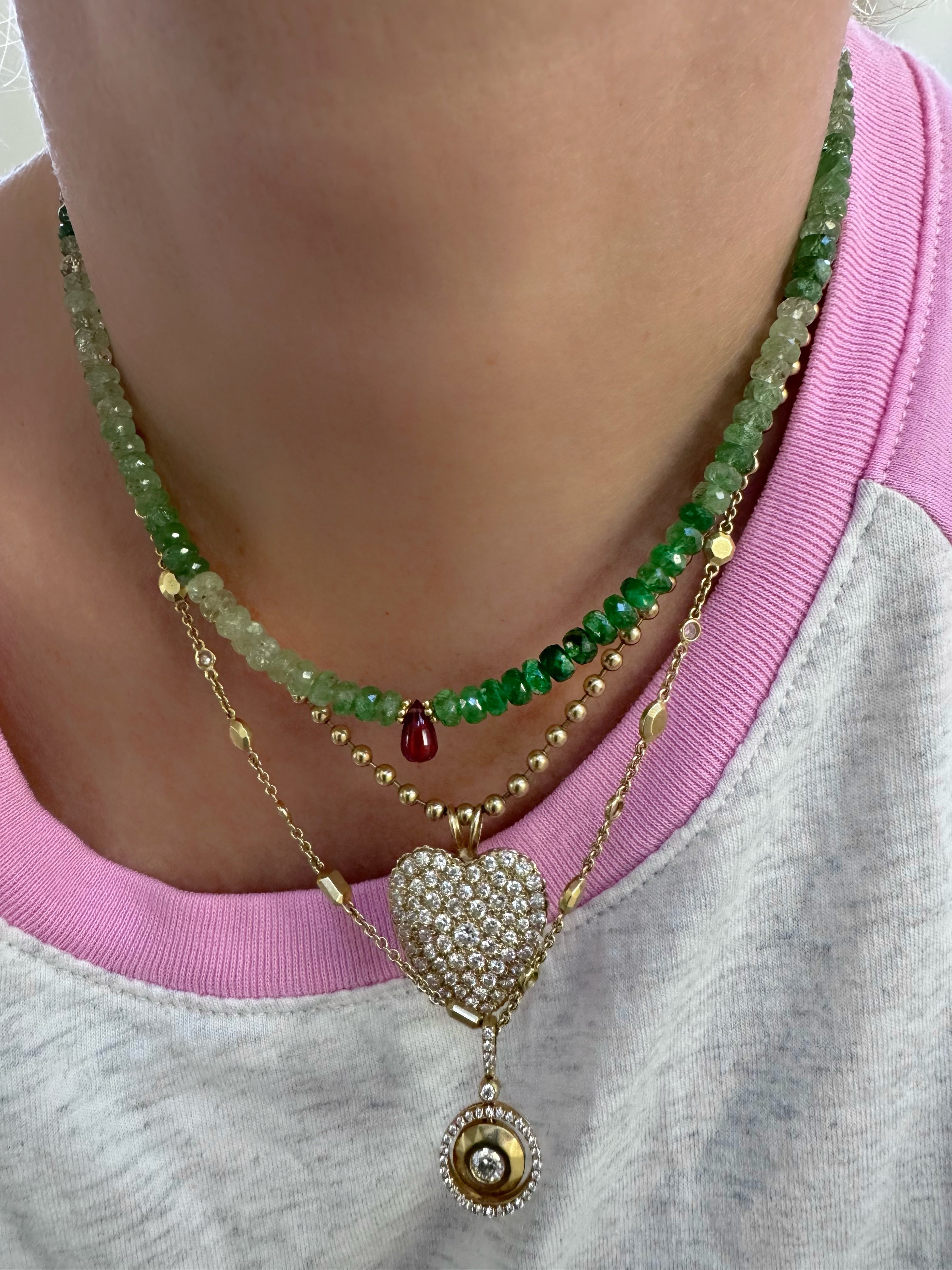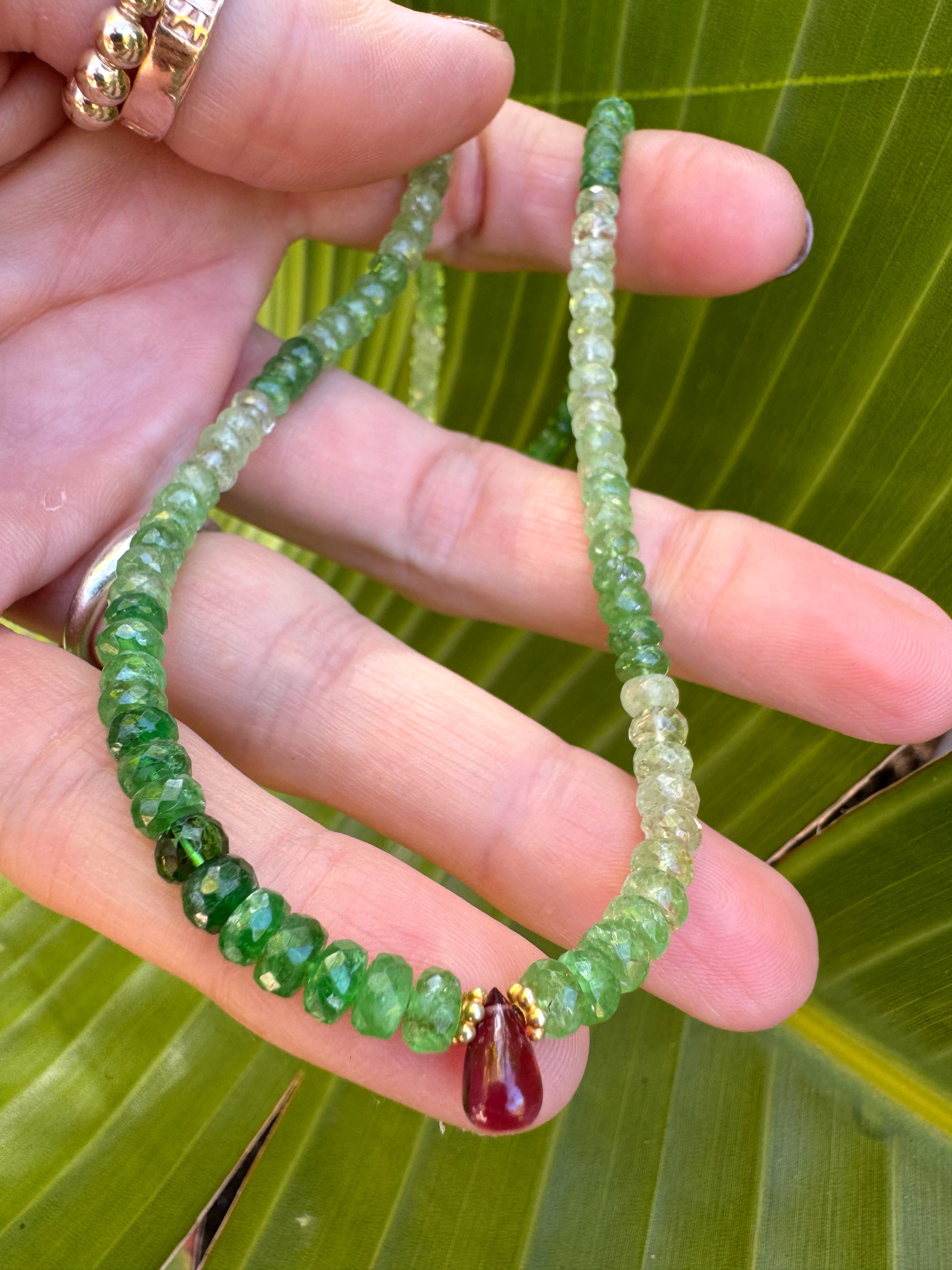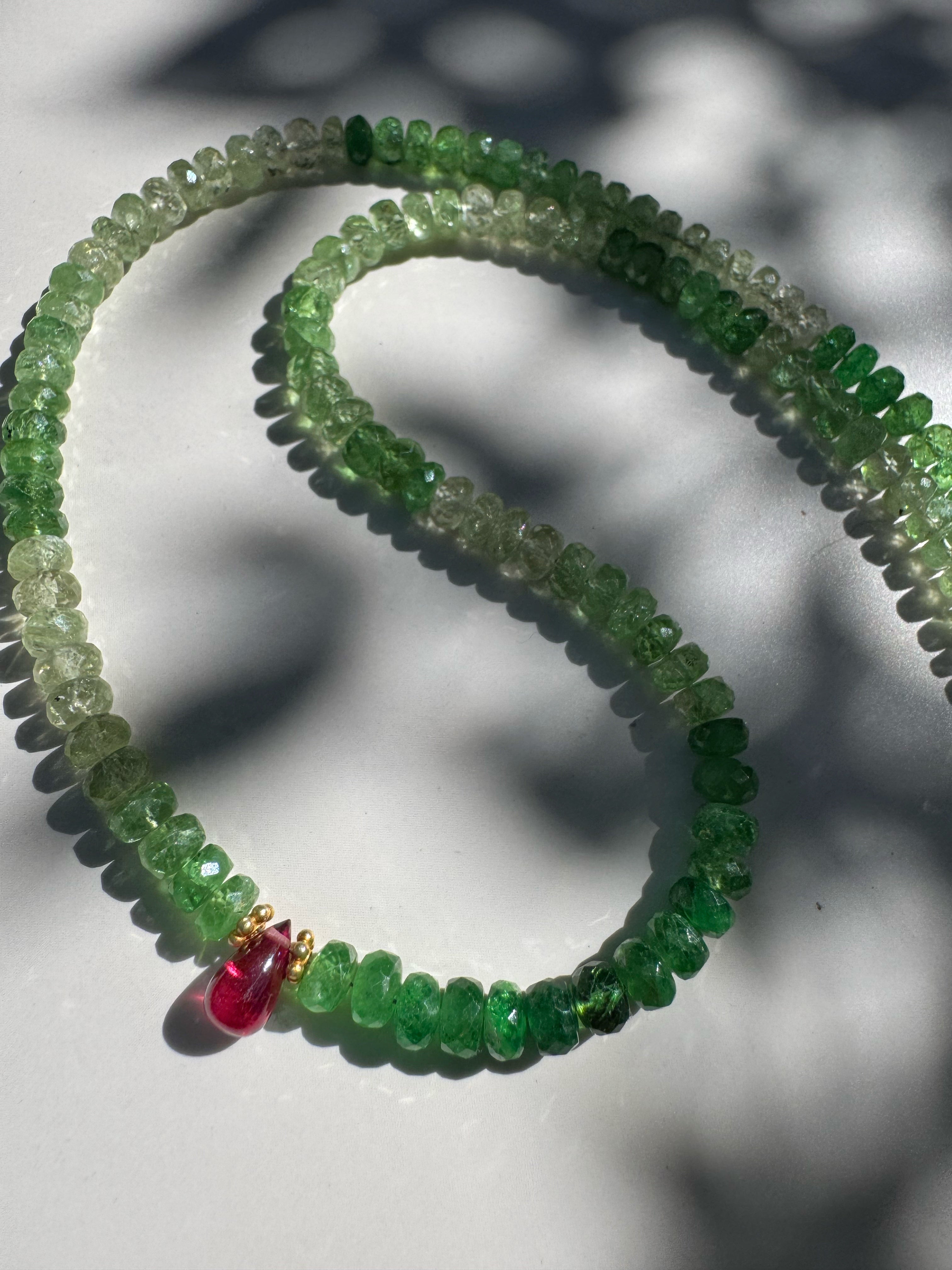 Stunning AAA shaded tsavorite bead necklace with rhodolite garnet drop