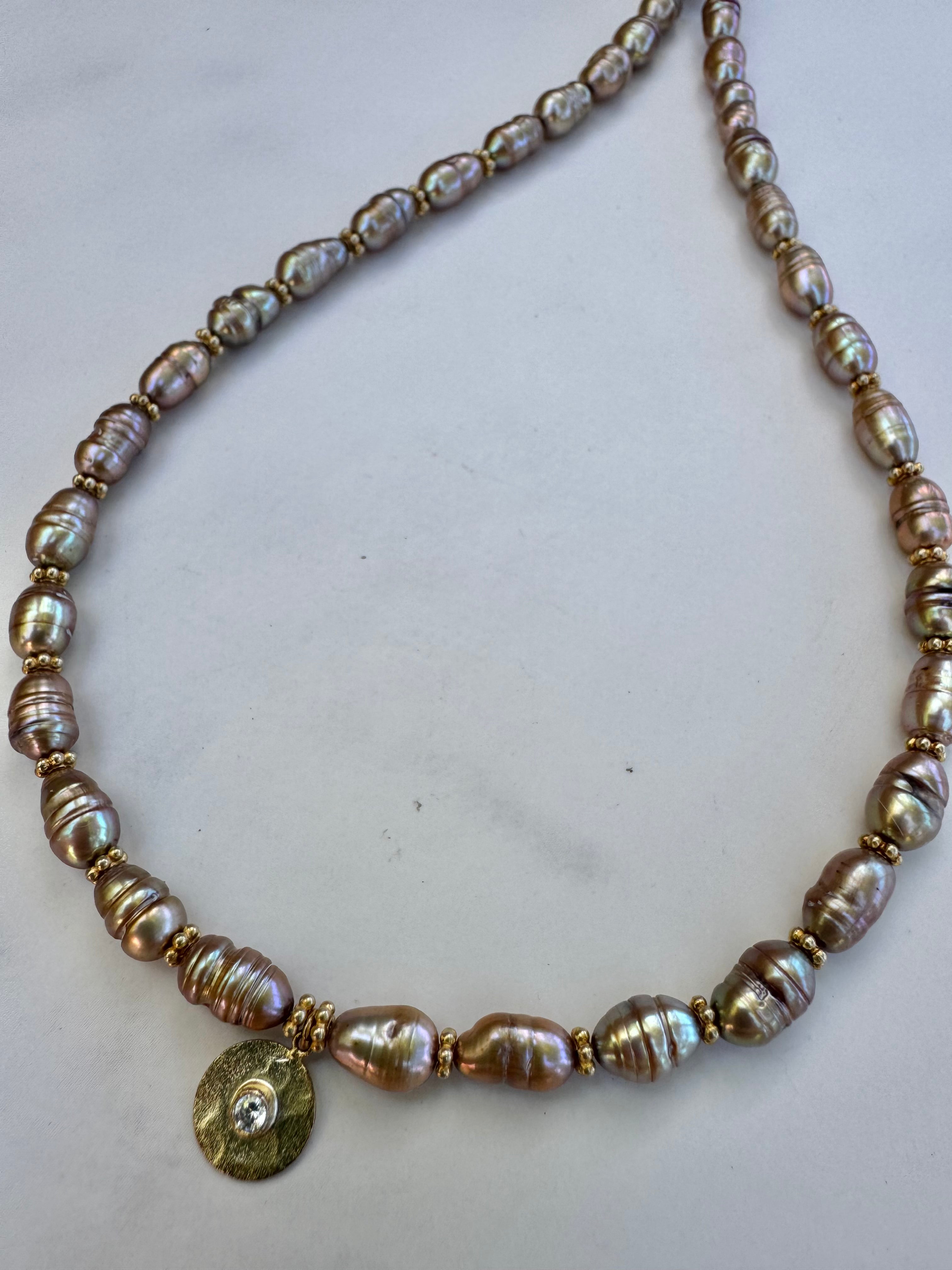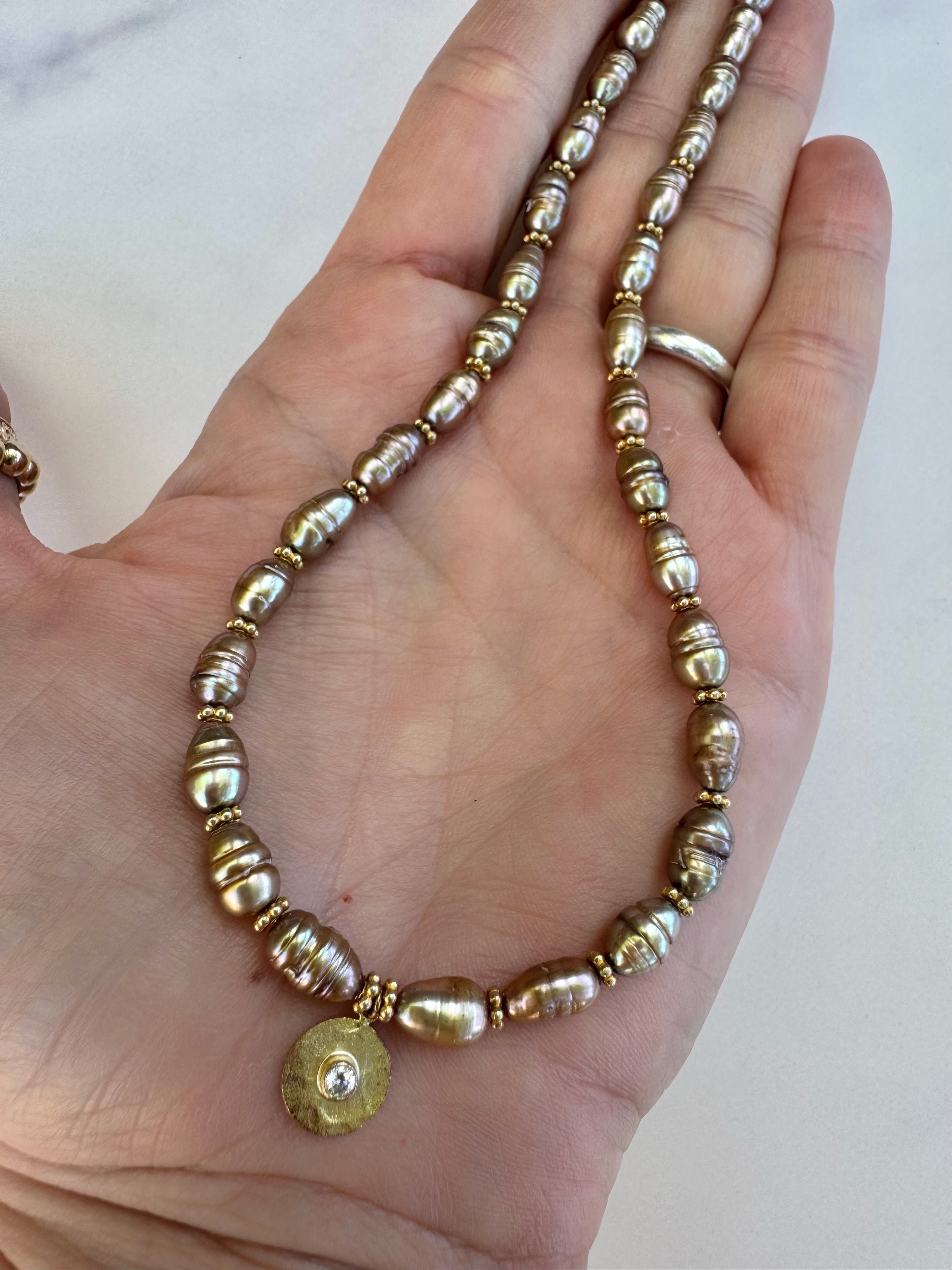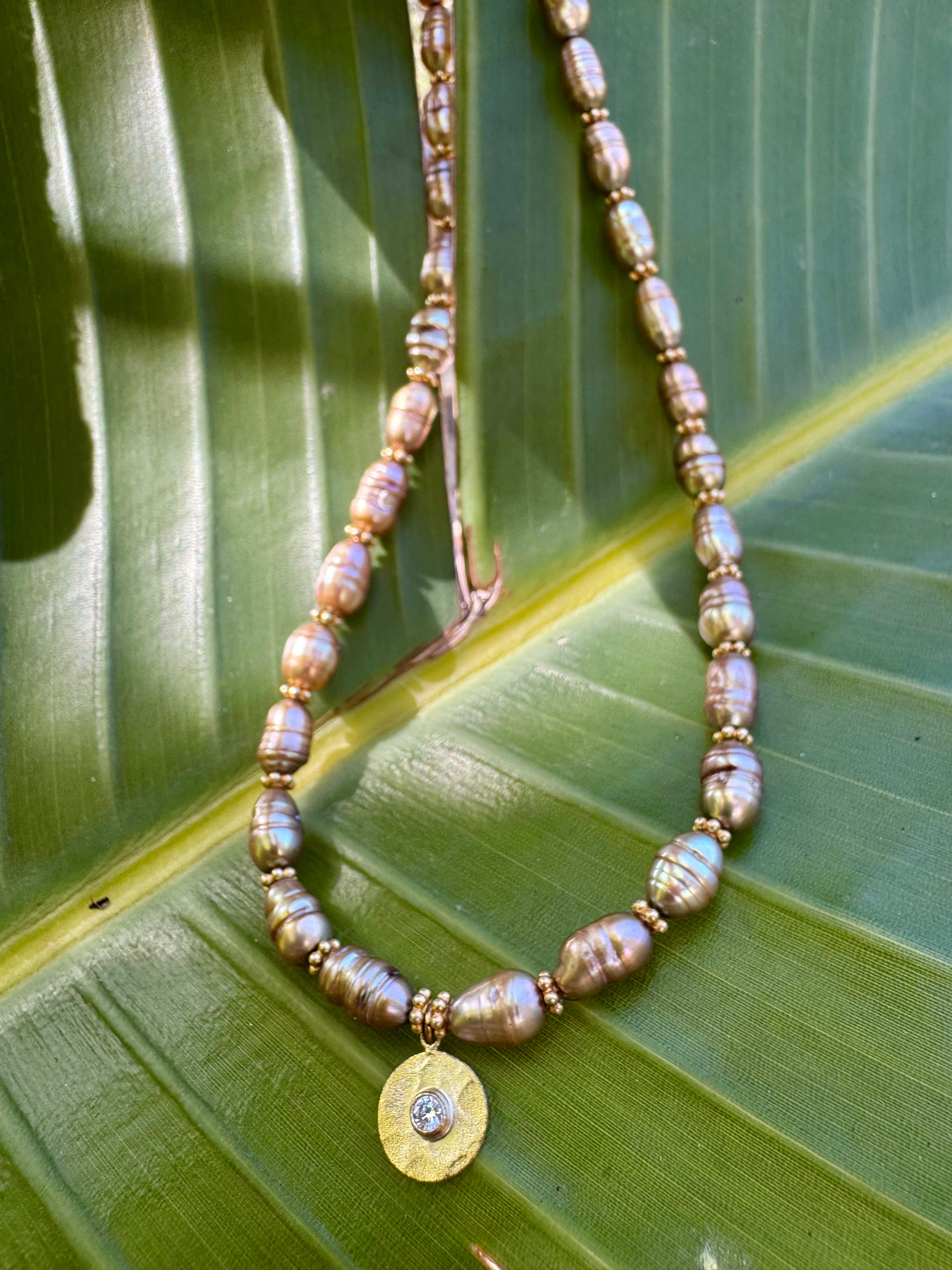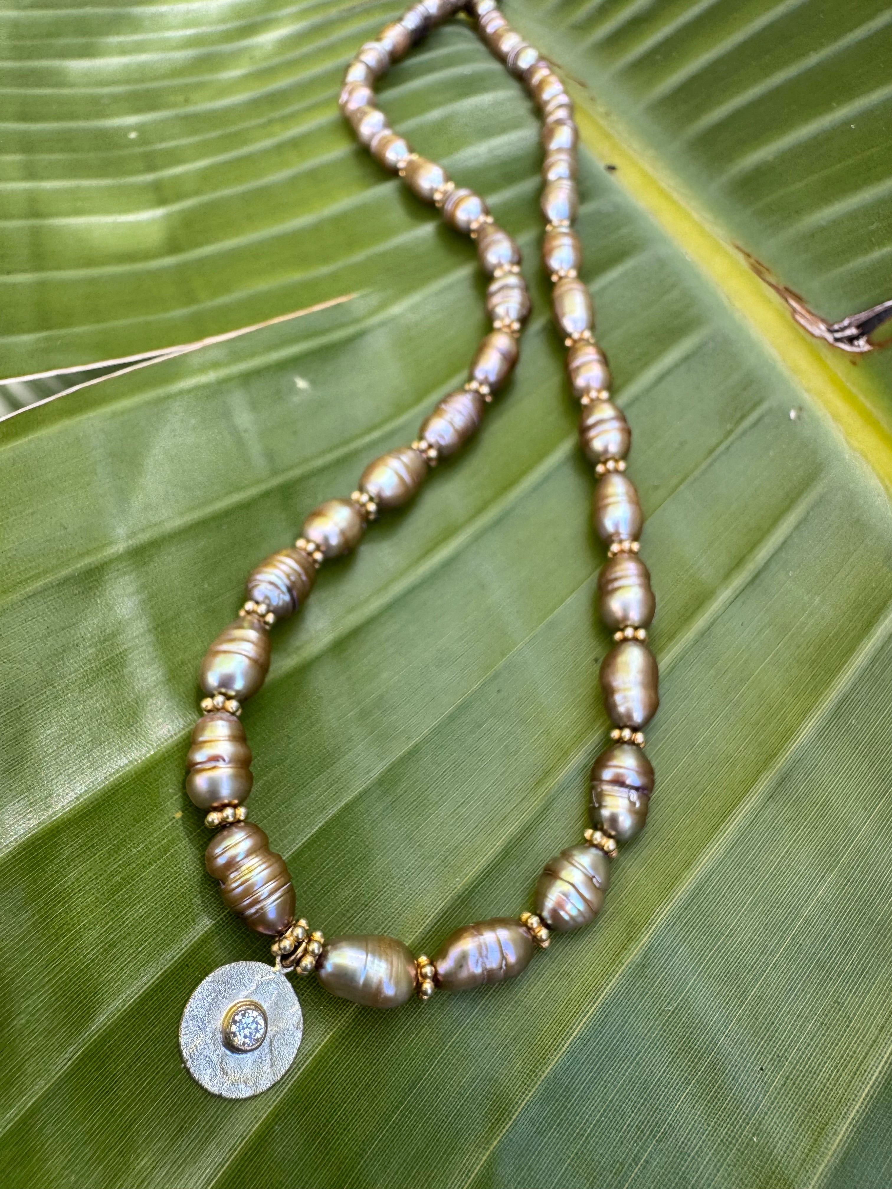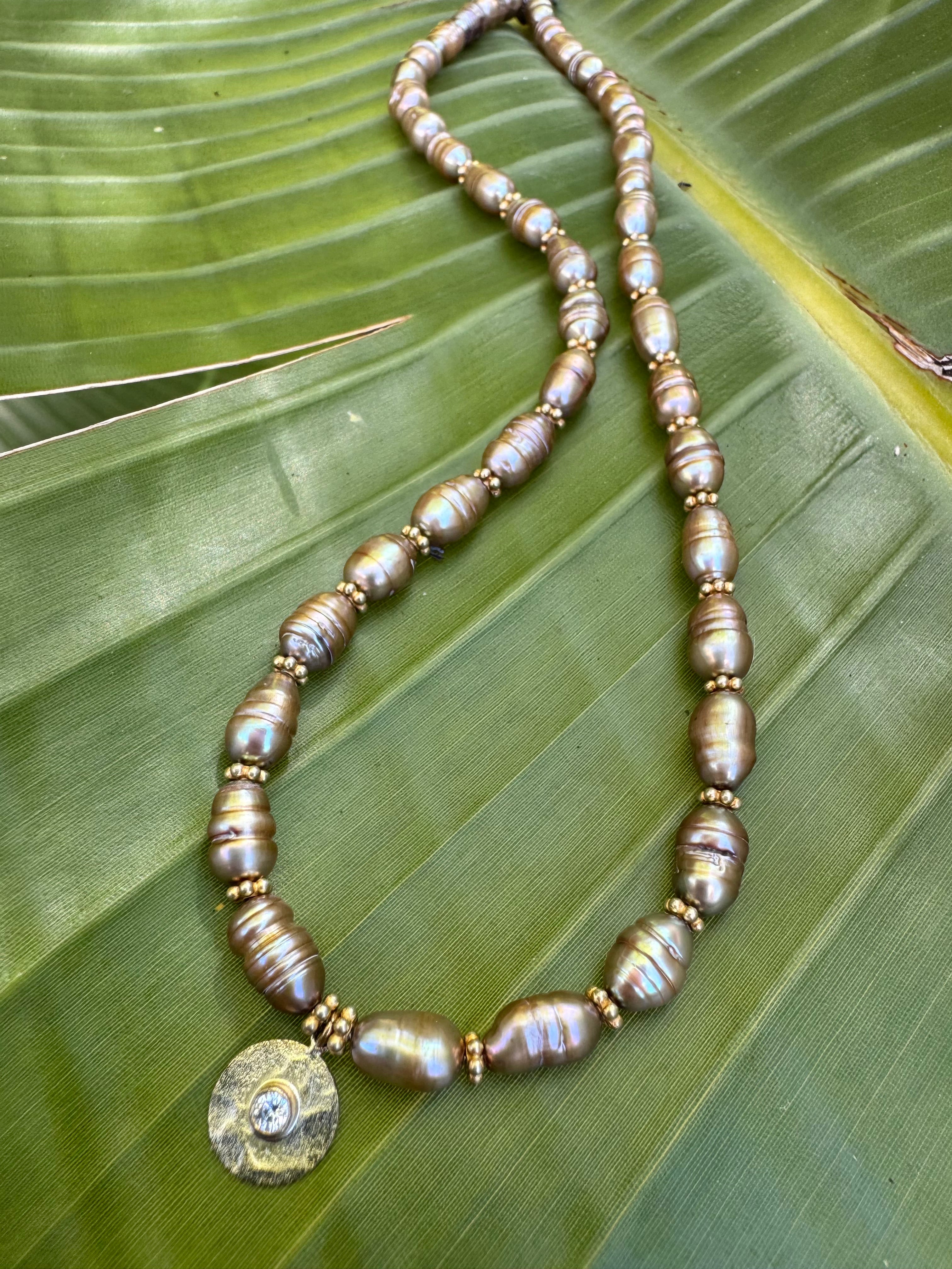 Stunning bronze freshwater pearls with vermeil/white topaz disc charm