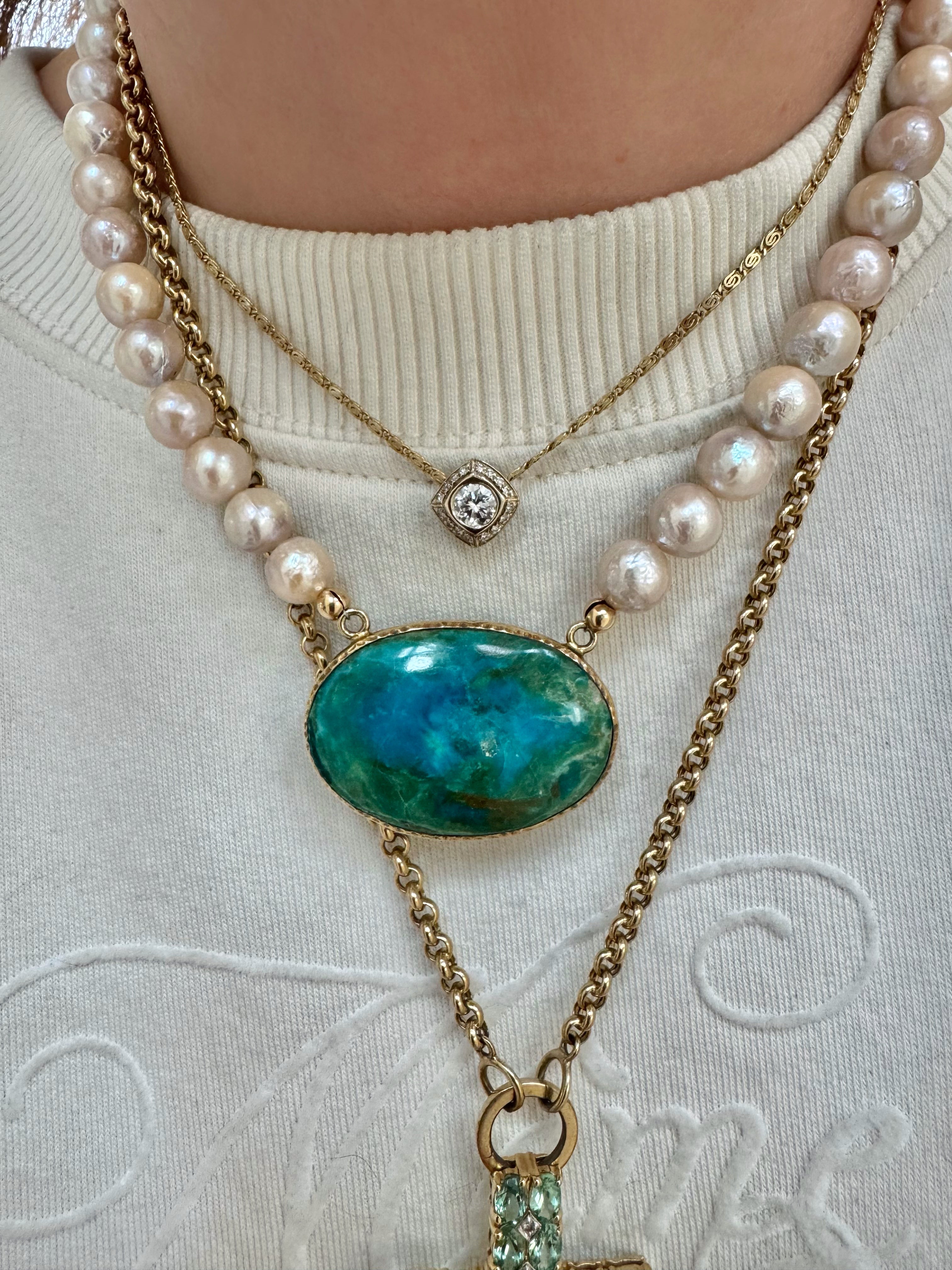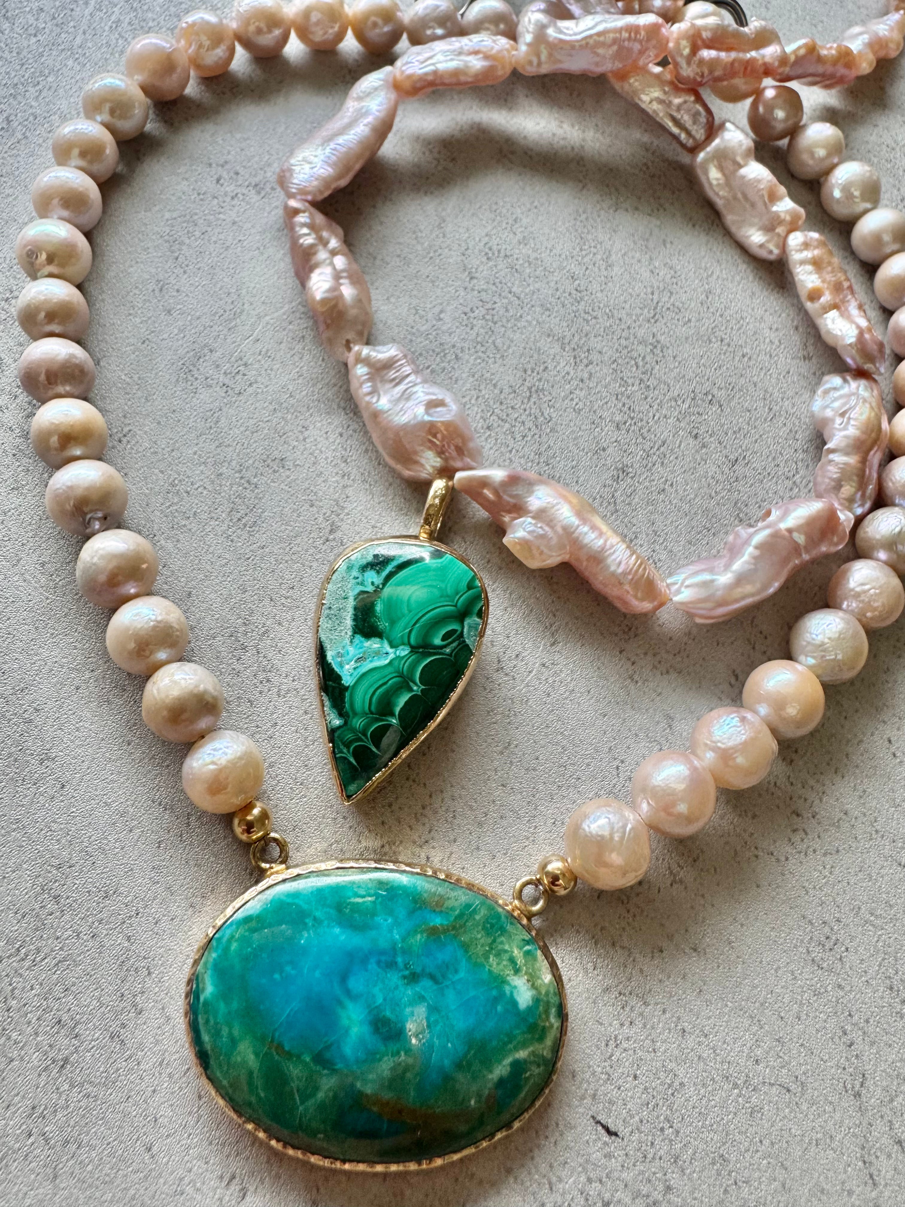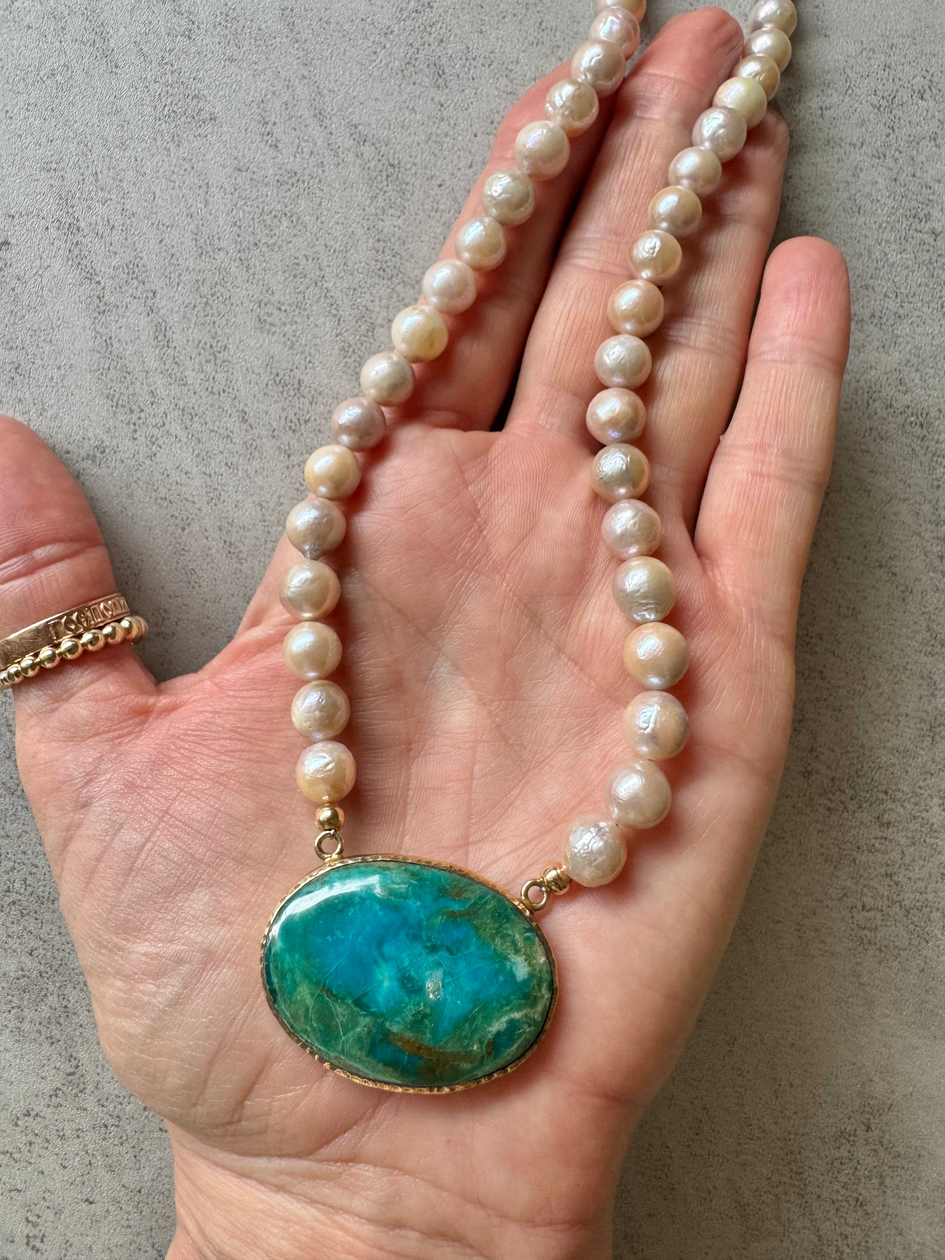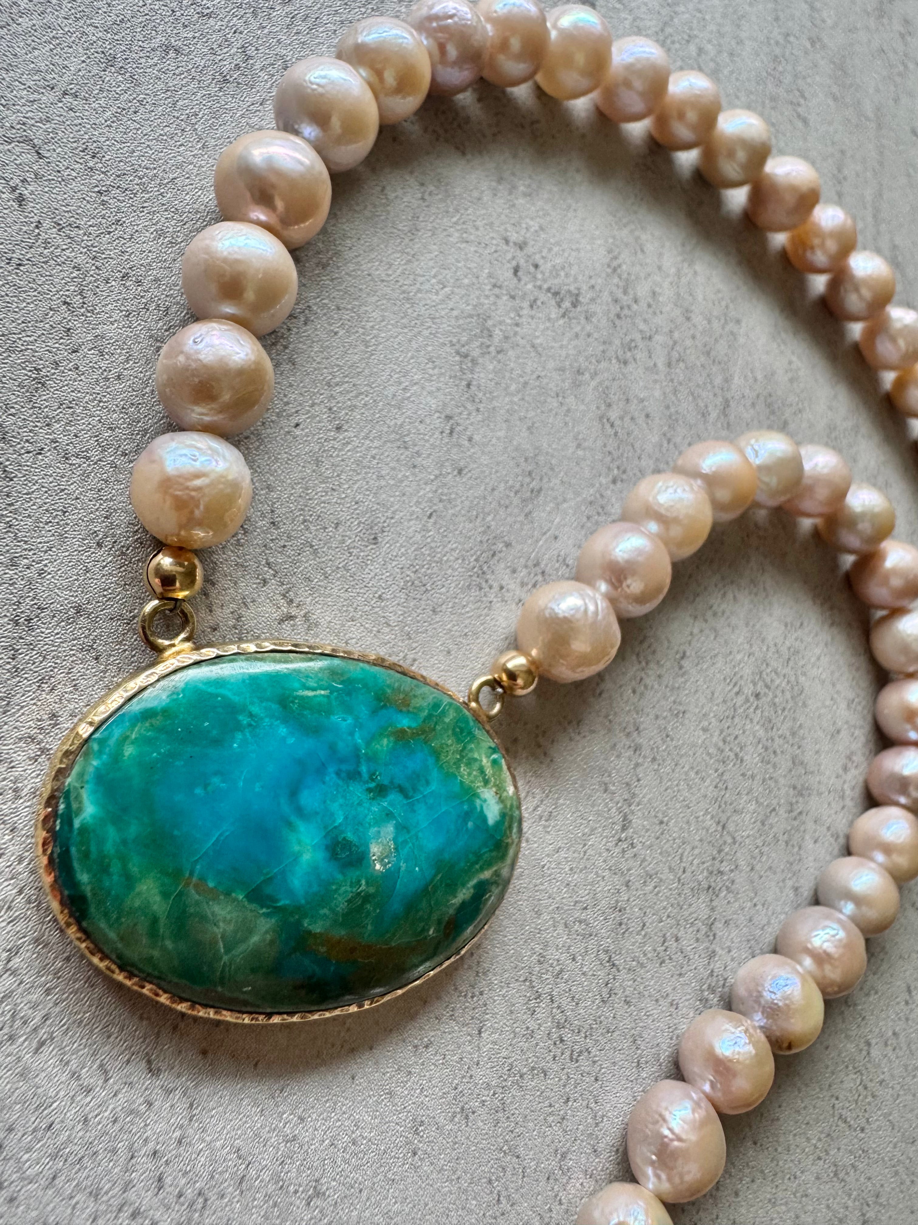 Stunning statement Andean opal pendant and freshwater pearls necklace