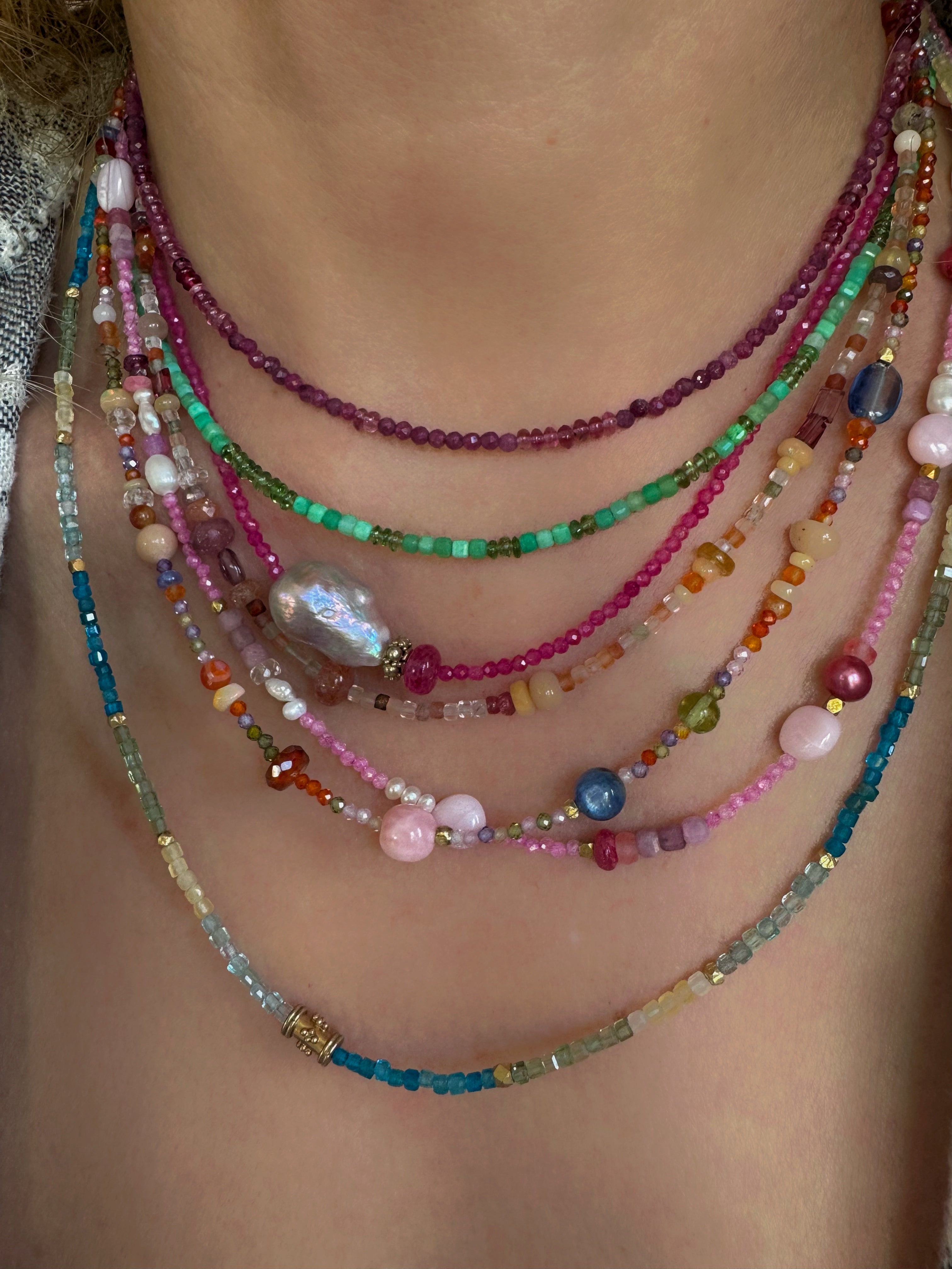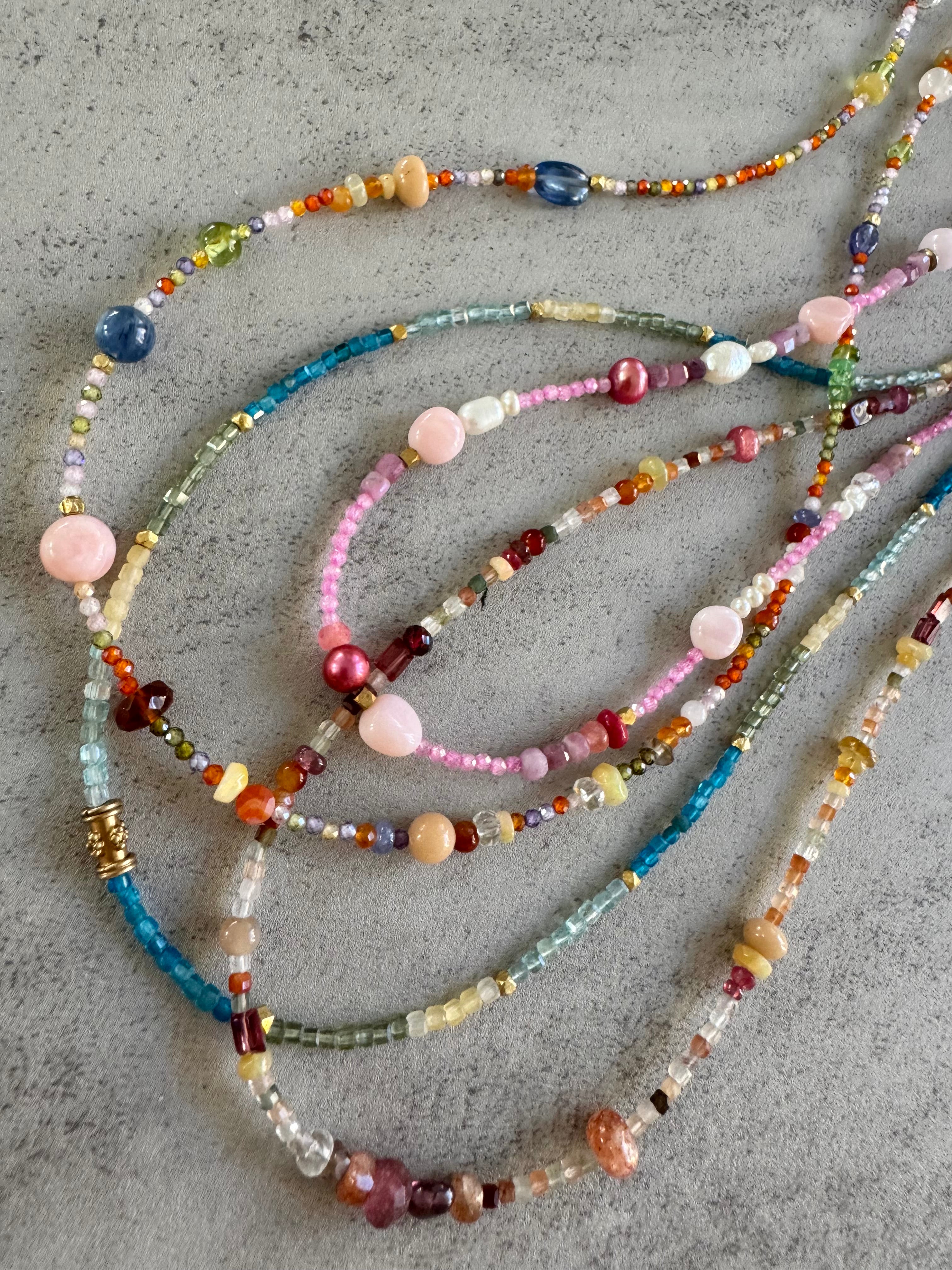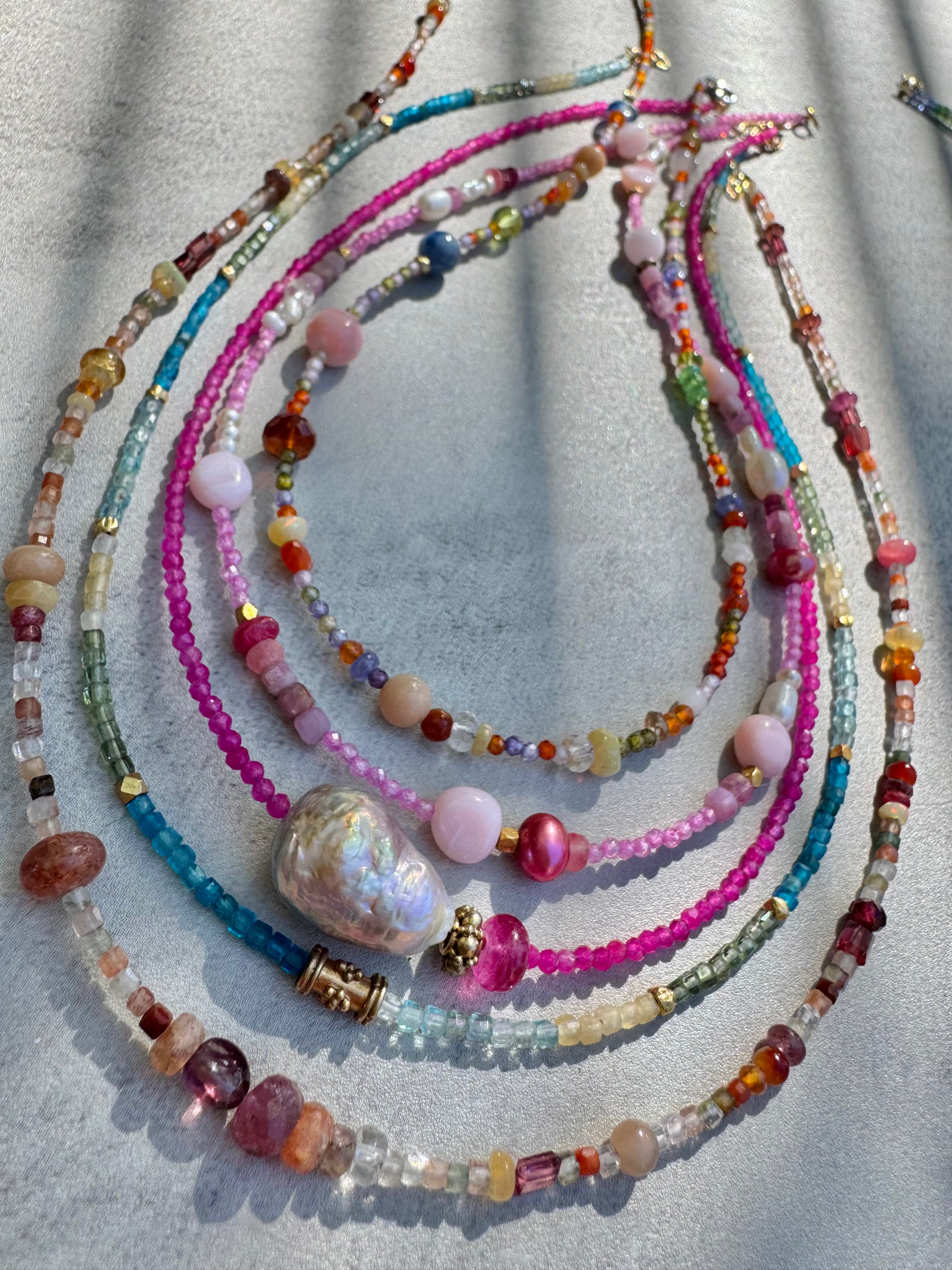 Sweet multi gem bead necklace with freshwater pearls and opals